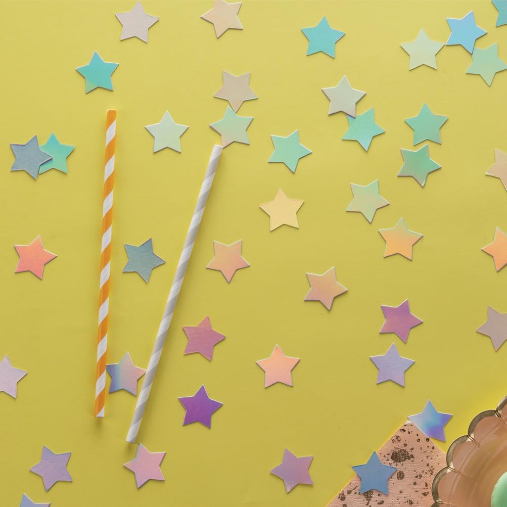 - Laser Silver Star Confetti Iridescent Radium 200 counts stars confetti,each star 1.2'' in diameter,high quality craft paper confetti