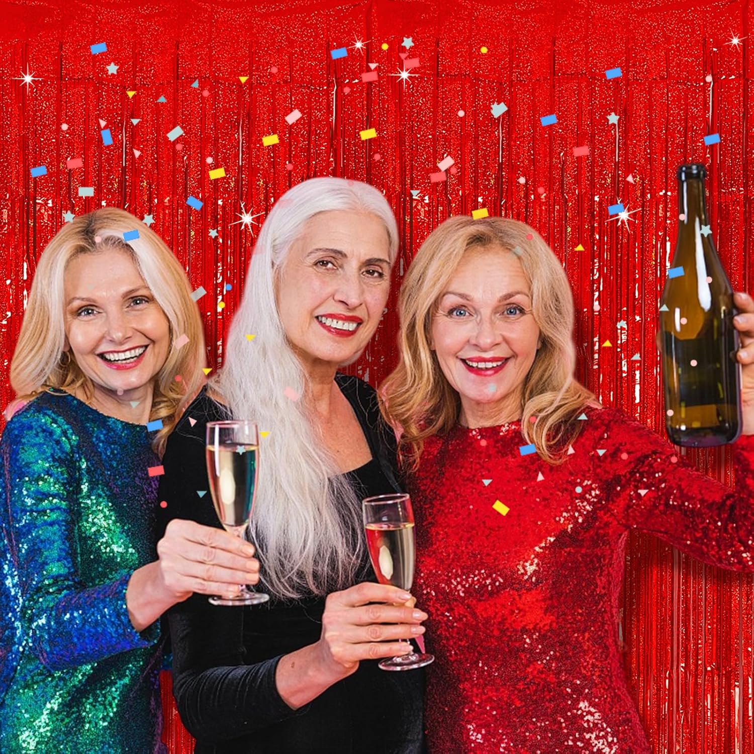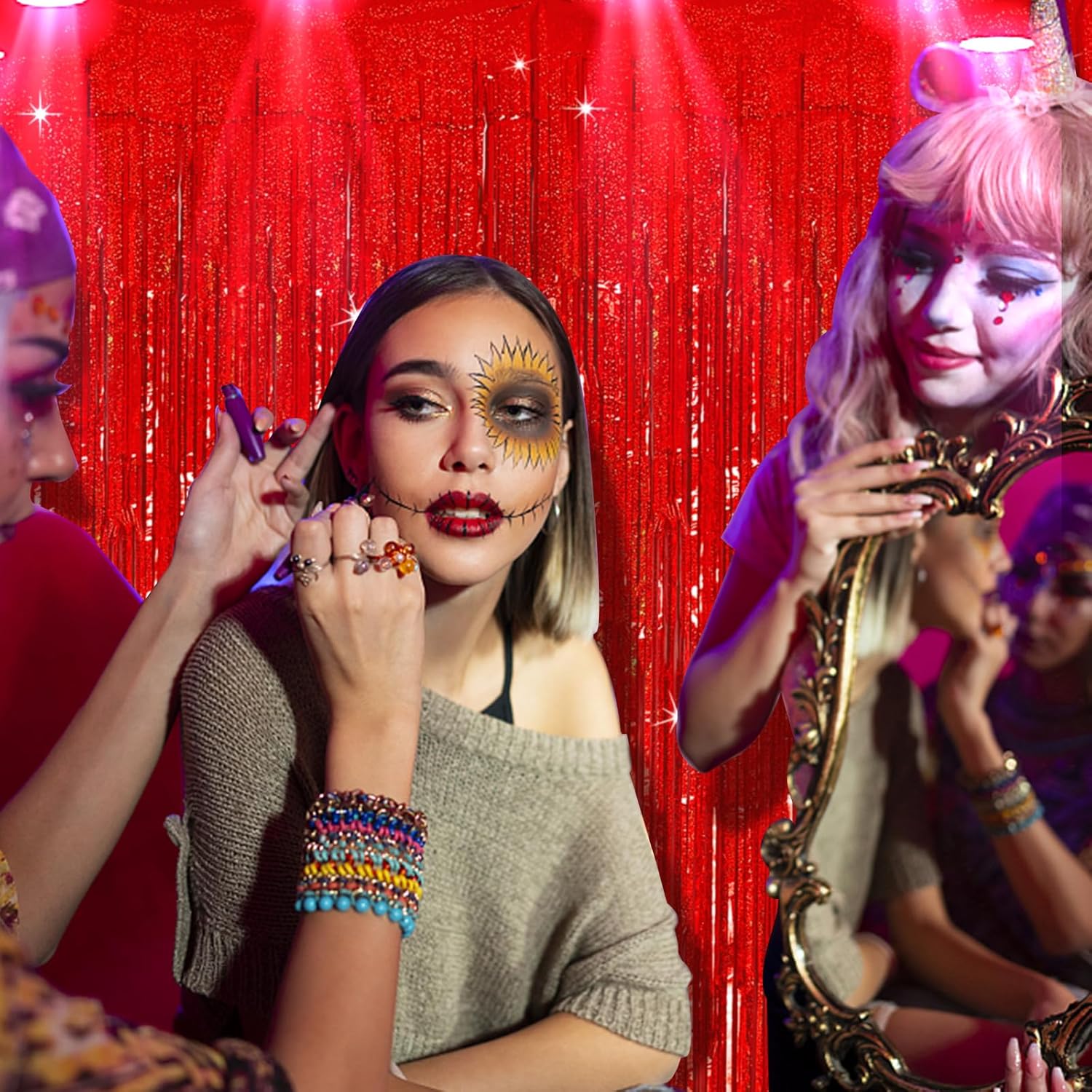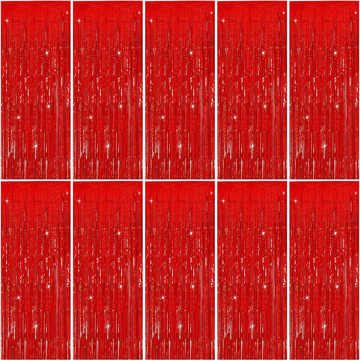 Tinsel Curtain Party Backdrop Red Birthday Decorations 10 Packs Glitter Foil Fringe Curtain Party Decor Streamers Photo Booth for Birthday Christmas Wedding Halloween Graduation Decorations