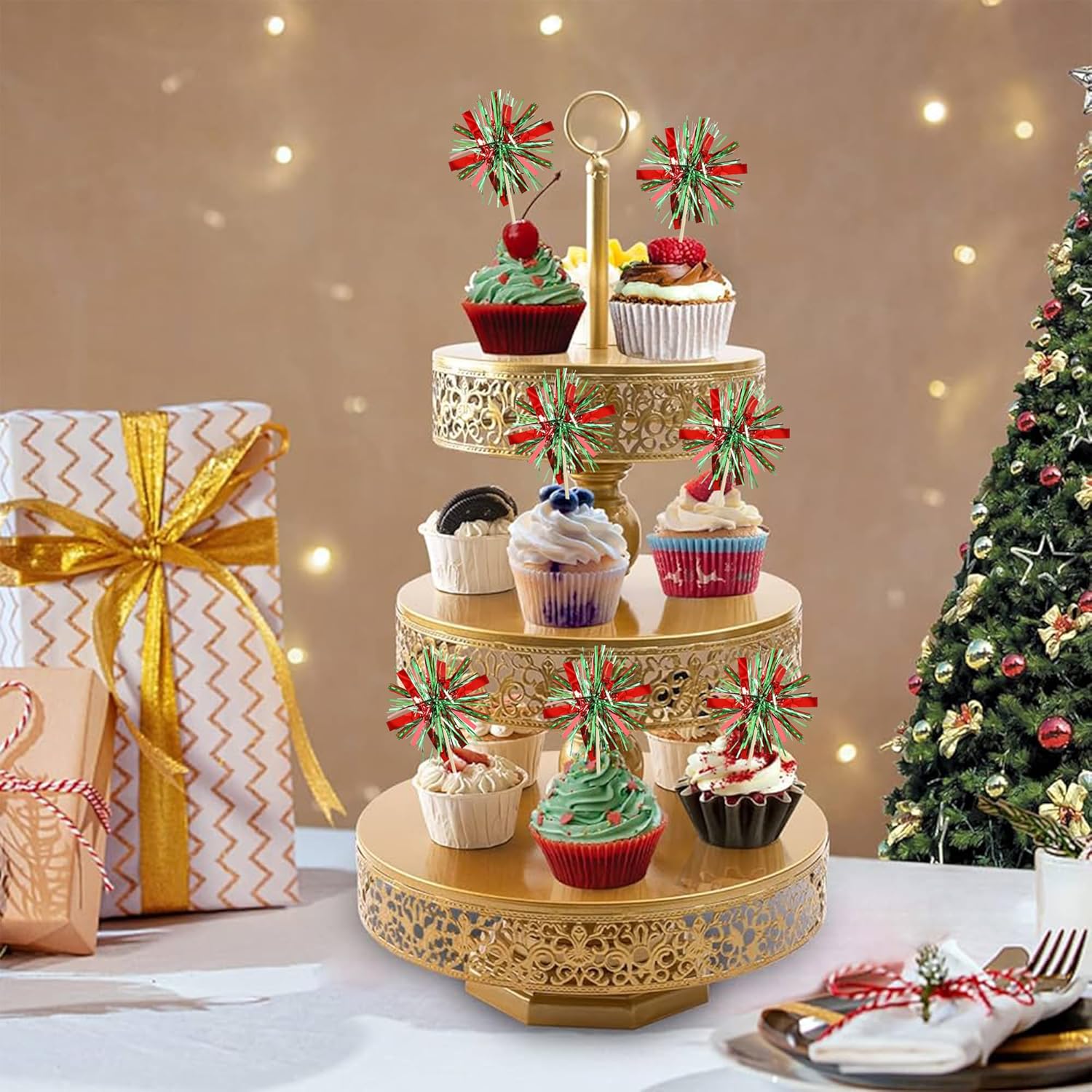 - -Premium Material: These Foil Firework Cupcake Toppers are made of high quality foil and food-grade toothpick, very safe to put them on cakes, cupcakes, ice cream, fruits, pie, dessert, cheese or any dish and food appetizer you want to decorate.