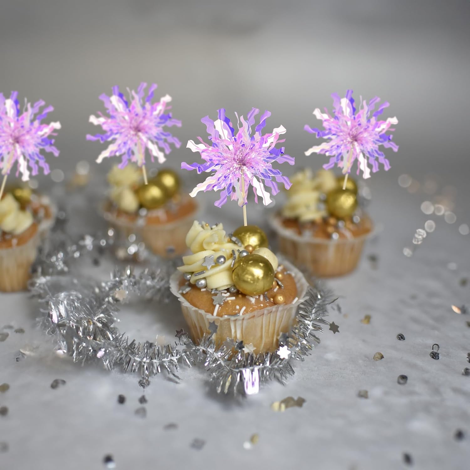 - -Premium Material: These Foil Firework Cupcake Toppers are made of high quality foil and food-grade toothpick, very safe to put them on cakes, cupcakes, ice cream, fruits, pie, dessert, cheese or any dish and food appetizer you want to decorate.