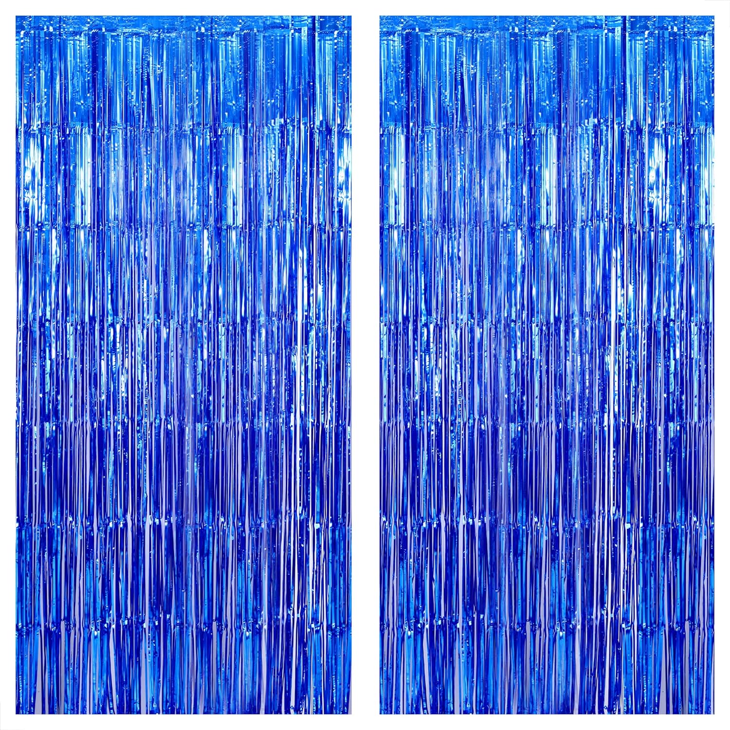 KatchOn, Metallic Blue Backdrop Curtain - Pack of 2 | Blue Streamers for Royal Blue Party Decorations | Foil Fringe Streamers for Under The Sea Party Decorations, Mermaid Bachelorette Decorations