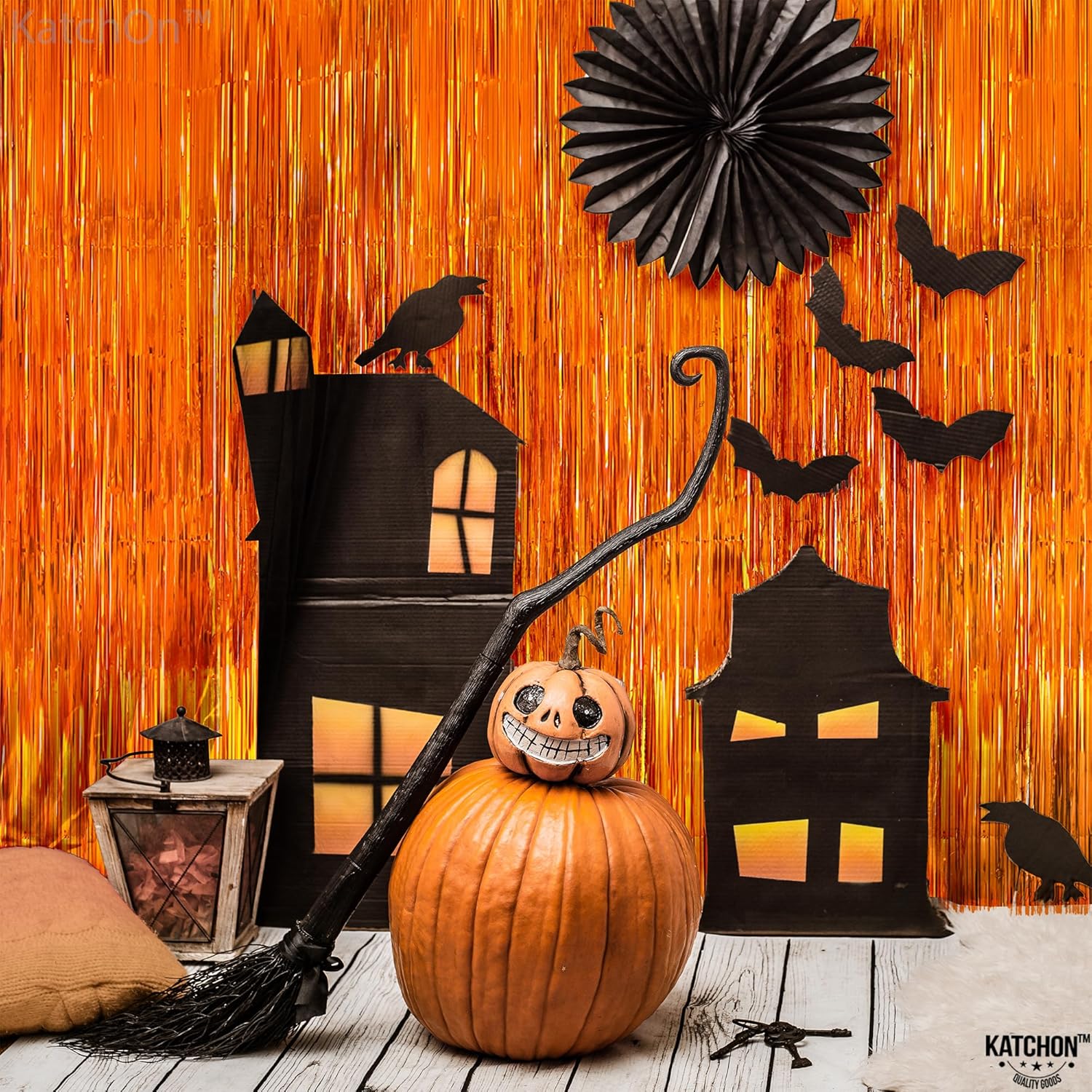 KatchOn, Orange Streamers - Pack of 2 | Orange Fringe Backdrop, Basketball Party Decorations | Tinsel Backdrop for Birthday, BabyShower, Bachelorette, Anniversary, Thanksgiving, Halloween Decorations