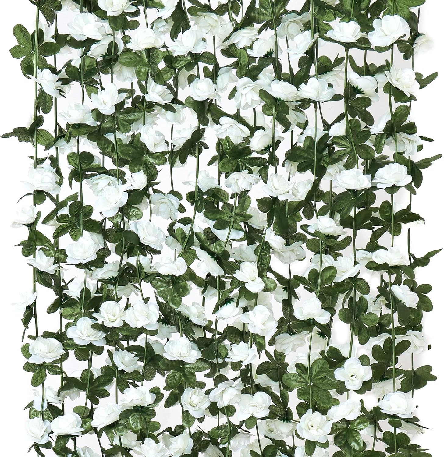 - 【Packaging and Size】The package includes 9 pcs fake rose vines. Each rose garland is 8 FT long, flower is 1.6 inches in diameter, each garland holds about 45 white flowers and 270 green leaves.