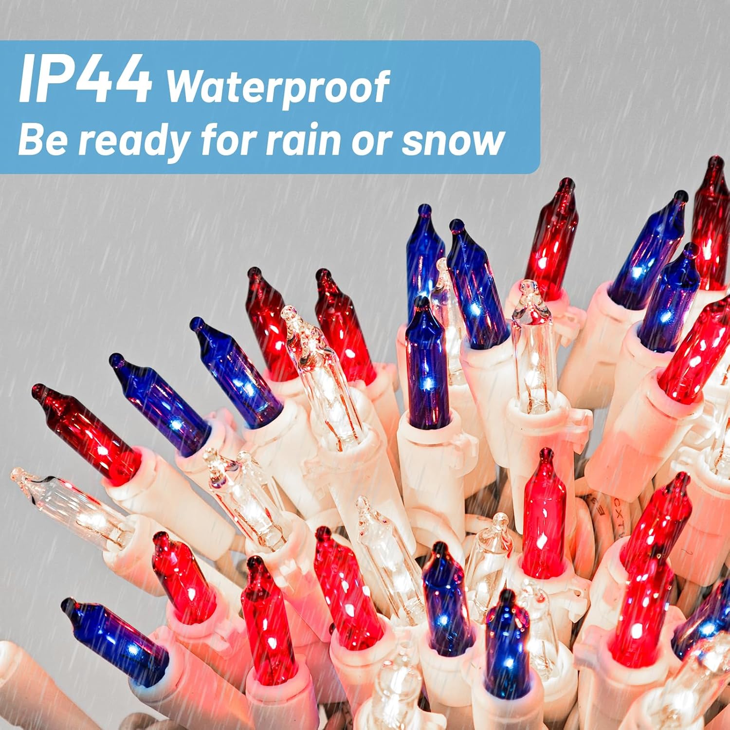 - Elevated Endurance: Elevate your festivities with our meticulously crafted Red White Blue Christmas Lights, featuring individually illuminated bulbs for uninterrupted brilliance. Experience a remarkable lifespan of up to 2,500 hours, ensuring enduring charm and enjoyment throughout the season