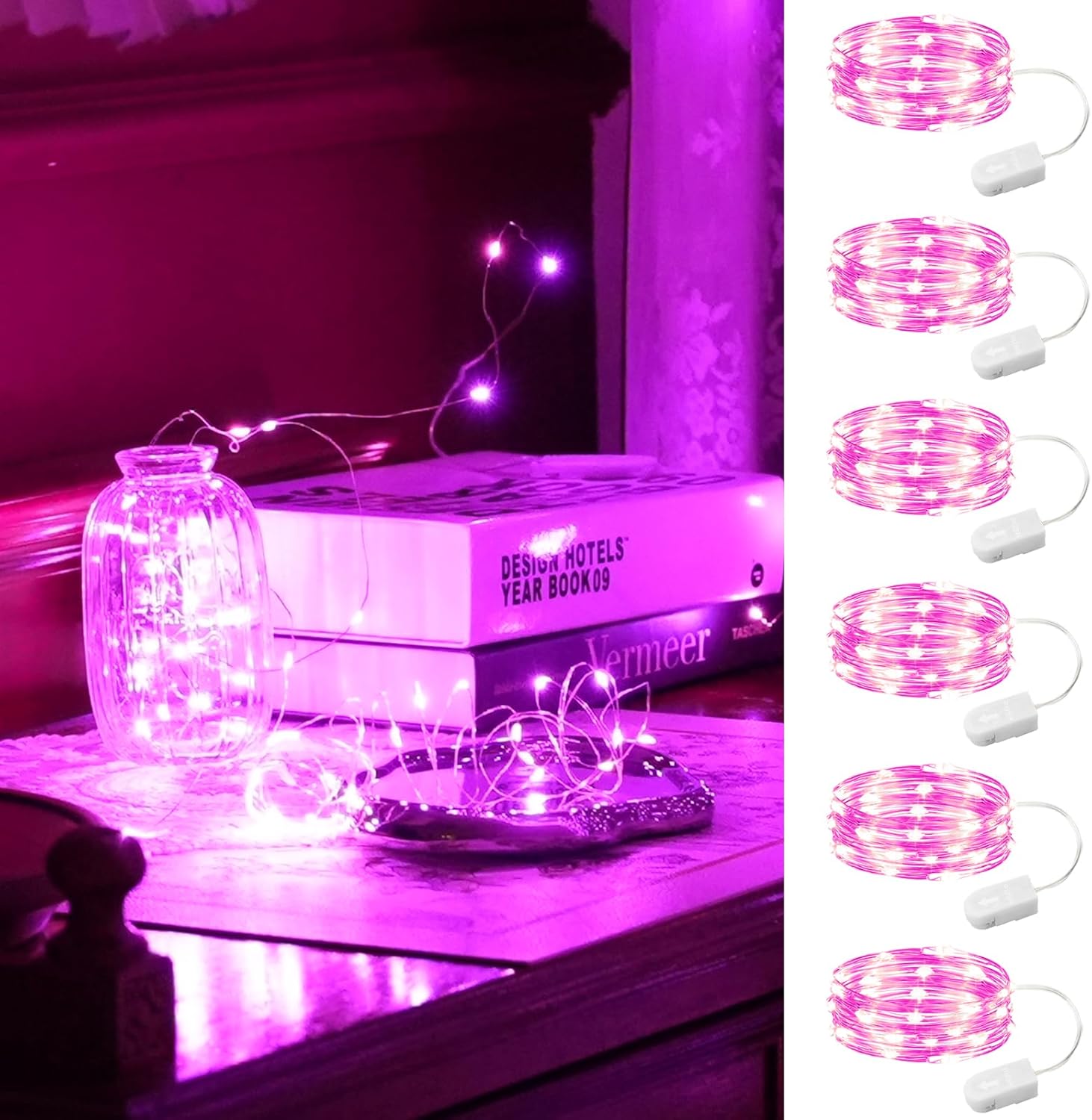 - 【Fantastic Pink Lights】: 6 separate mini fairy lights battery powered, made of 7ft high quality Silver coated copper wire, It’s flexible, strong and durable. Perfect for your crafts project , floral arrangements plants, signs, furniture glass jars, vases, wine bottles or other decorations.