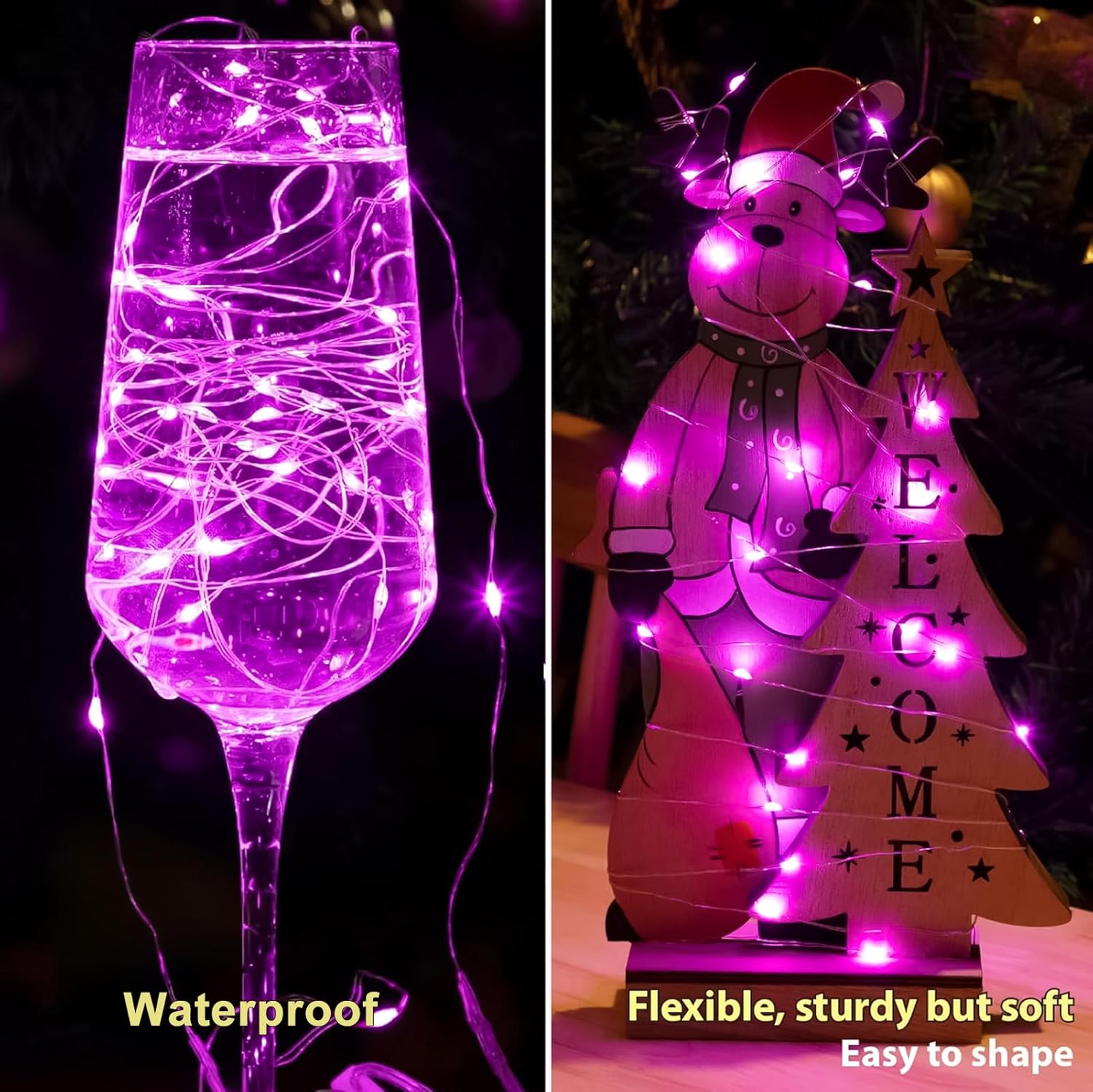 - 【Bendable and Cuttable】: Thanks to the flexible and soft copper wire materials, the wire part can be cut to your needs and can be bent and wrapped easily around stair railings, Christmas trees, mason jars, plants, wreaths, mirrors, flowers, gardens and almost everything else. Perfect to creating a romantic cozy atmosphere. (The end with the battery box cannot be cut off).