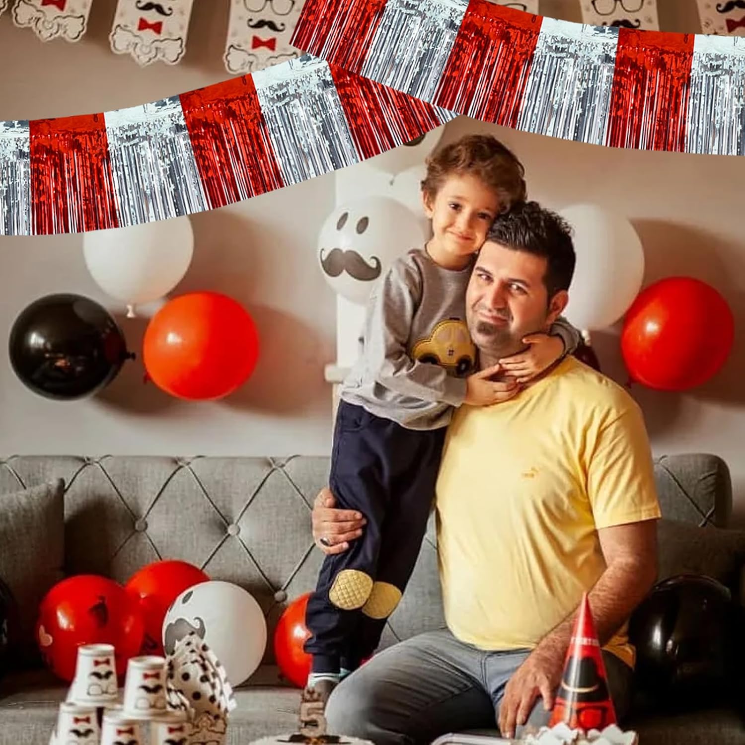 BEISHIDA 3 Packs Red Silver Metallic Foil Fringe Garland Red Silver Wall Hanging Tinsel Fringe Banners for Halloween Floats Bridal Shower Wedding Birthday Graduation Holiday Party Decoration(30 Ft)