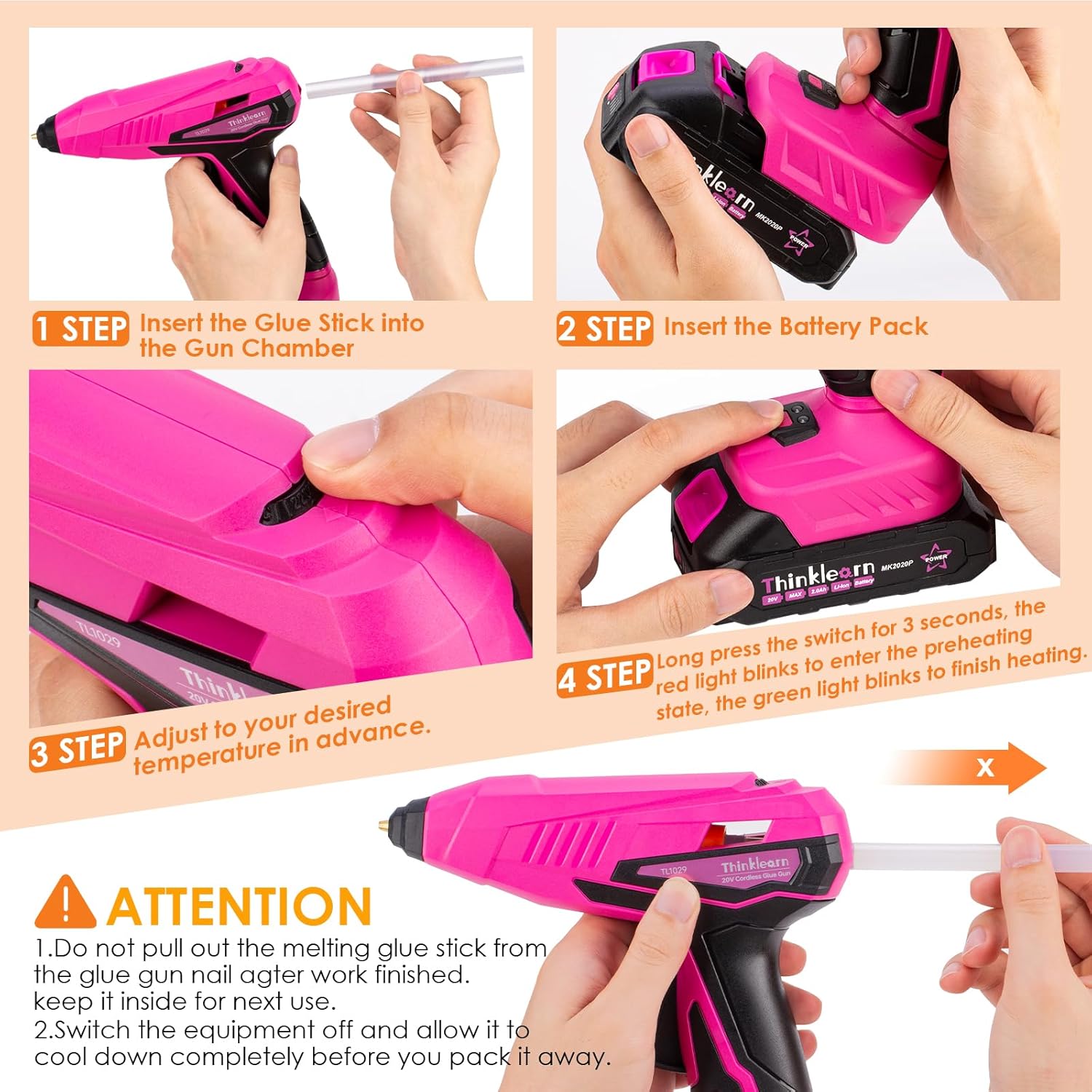 - Temp Adjust - THINKLEARN Pink 20V Heavy Duty Glue Gun can be preset for temperature.The variable temperature range of it is from 130β to 220β, allows you to set the desired temperature for process projects with different materials.