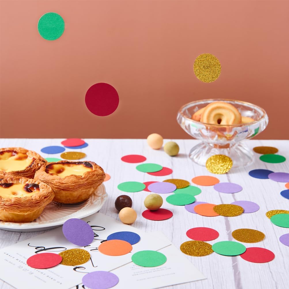 - Confetti Rainbow Gold Red Orange Green Blue Purple 200 counts dots confetti,each dots 1.2'' in diameter,high quality craft paper confetti