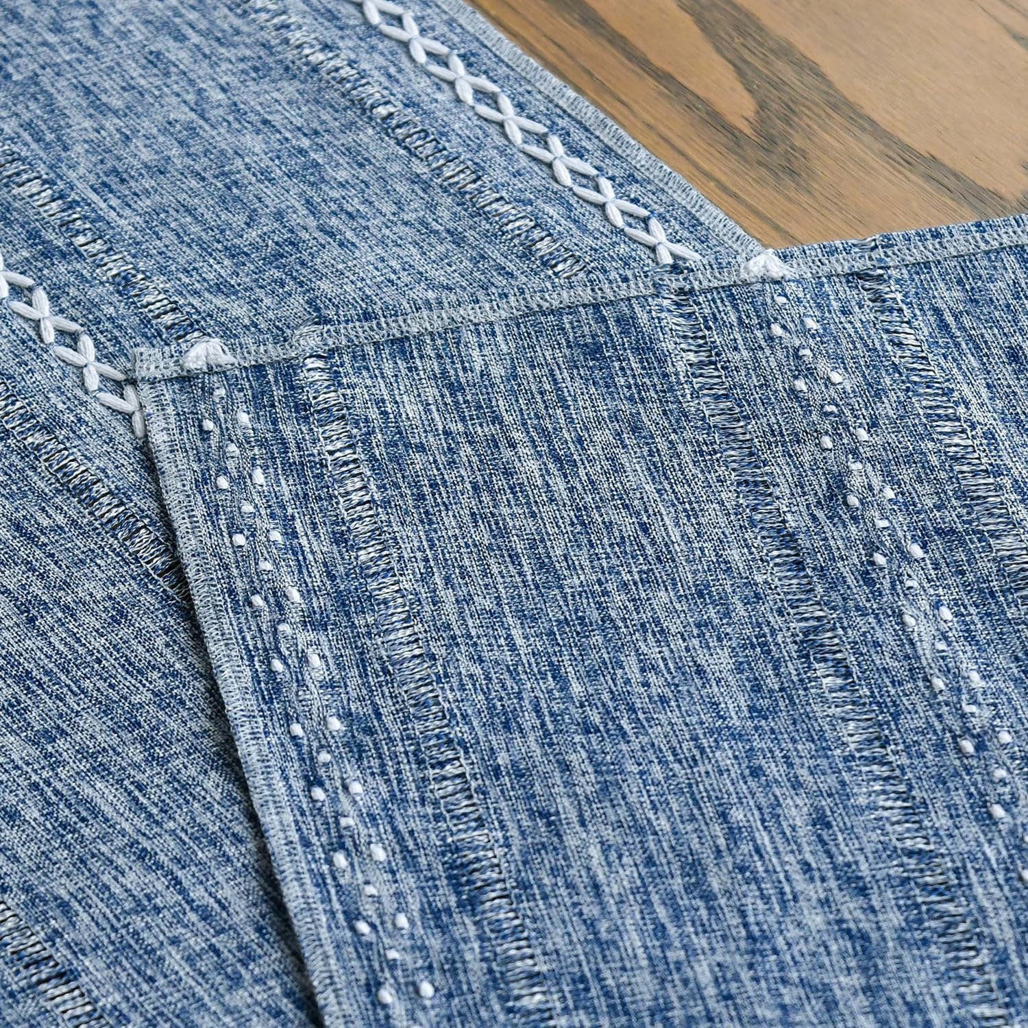 Artoid Mode Blue Rustic Cotton Linen Table Runner, Seasonal Embroidered Hollow Kitchen Dining Table Decoration for Home Party Decor 13x72 Inch