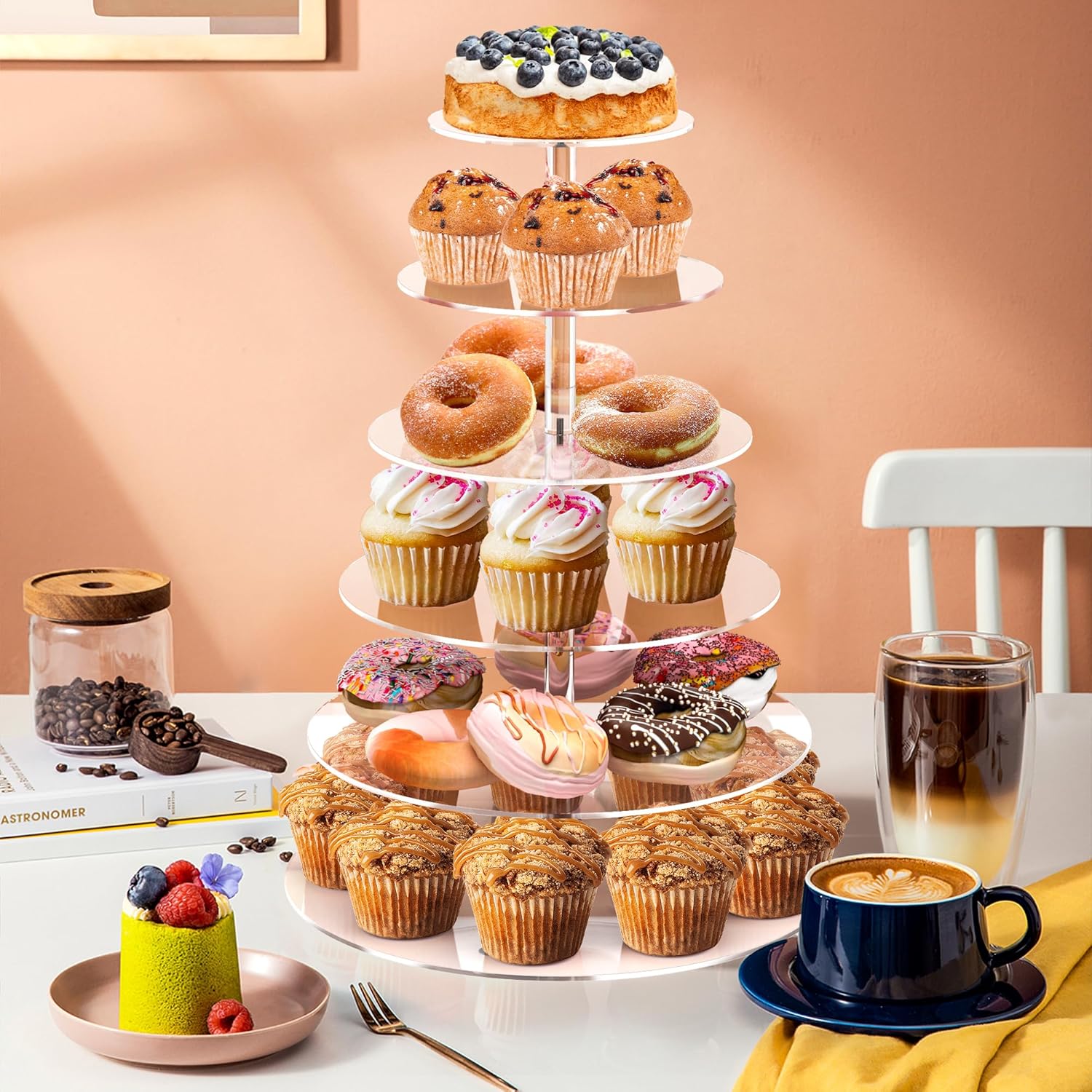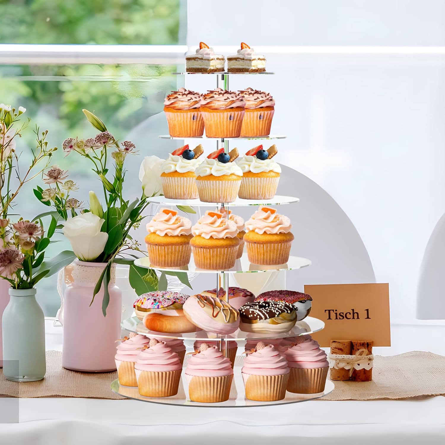 - 【Durable Acrylic】 This premium cake stand is built from food-grade acrylic, resistant to wear, and ideal for both family gatherings and large celebrations. A reliable, long-lasting cupcake holder option that effortlessly handles up to more than 50 cupcakes