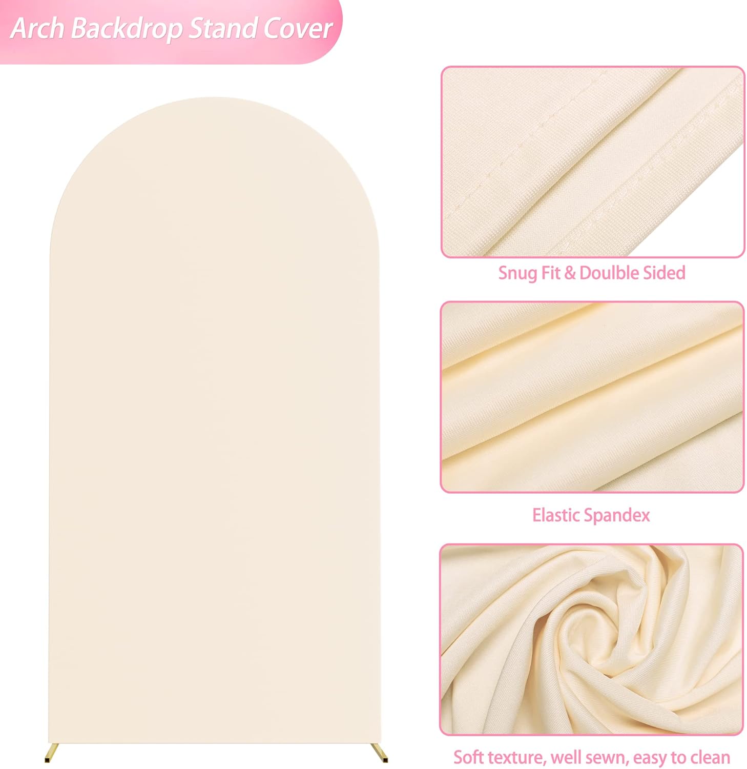 - 【Arch Backdrop Stand and Covers Package】Package contains 1pcs wedding arch stand and 1pcs arch cover. Size: 6.6x3.3ft(HxW). Material: metal arch backdrop stand and spandex arch cover. Color: Beige arch cover and gold wedding arch stand. Decorate your party with our gold arch stand and arch covers to create an epic decor for your celebration.