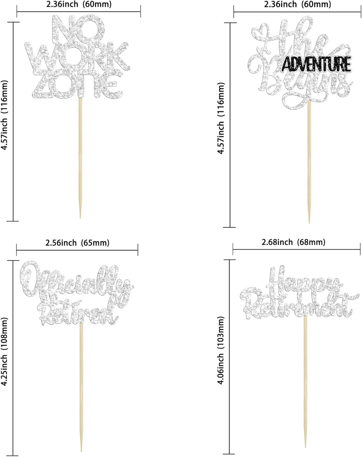 - 【NO Required】: 24Pcs Happy Retirement Cupcake Toppers can put in the cake directly! These Happy Retirement Cupcake Toppers saves your time and super easy to use. You can easily dress up your birthday theme cakes, yes! but don't stop there, put them into desserts, cookies, fruit pieces, appetizers, muffins and so much more!