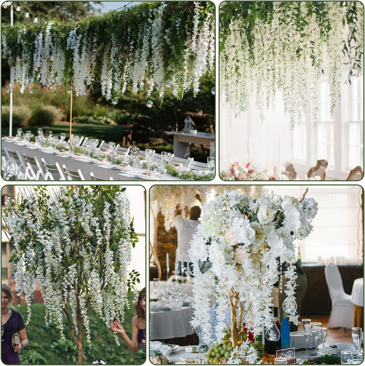 - Include Content:This package includes 50 white artificial wisteria vines, measuring 3.6 feet in length. Each vine has three branches, measuring 23.6 inches in length. There are 29 white wisteria flowers on each branch