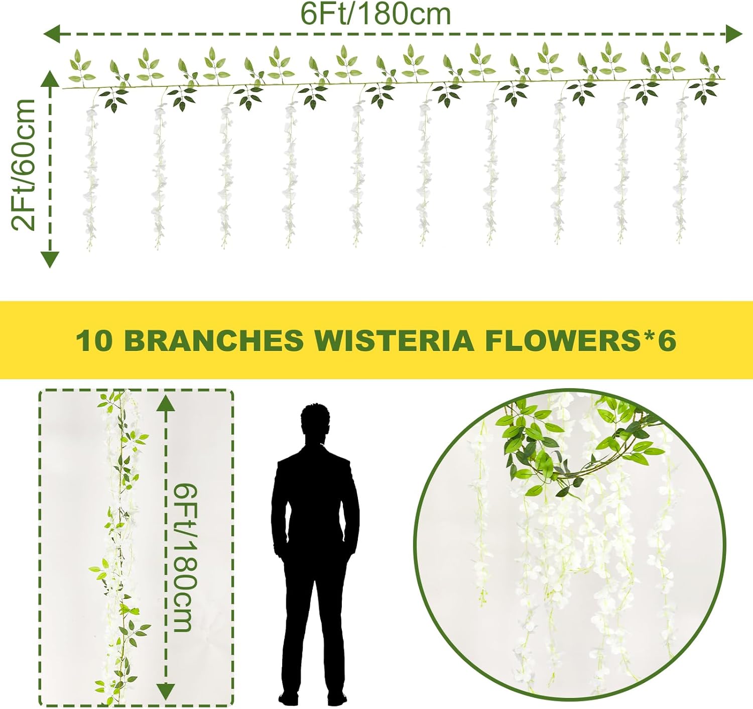 Wisteria Artificial Flowers Garland,10Pcs Total 60ft Silk Fake White Wisteria Flowers Hanging for Home Garden Wedding Arch Party Indoor Outdoor Decor