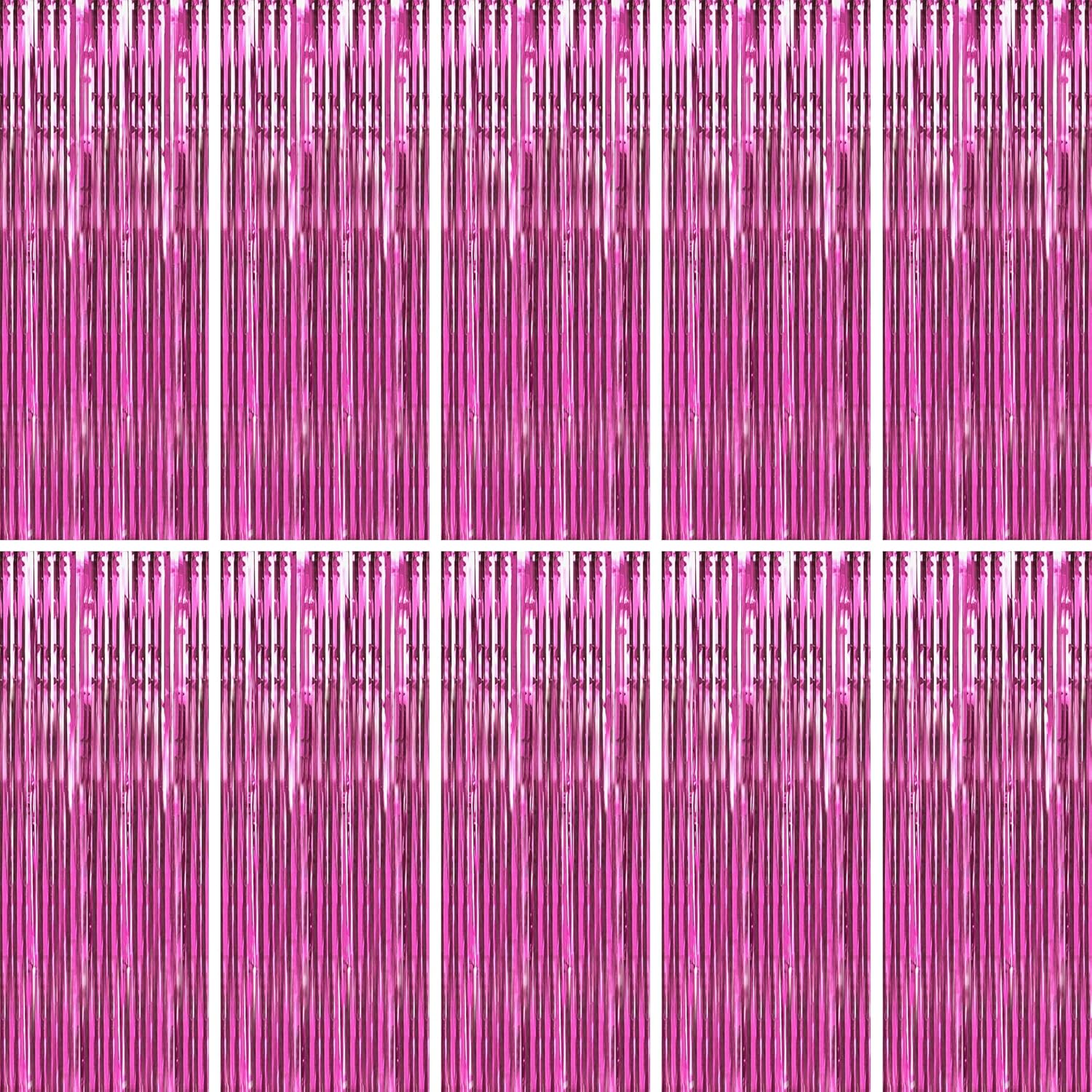 BTSD-home 10 Pack Pink Foil Fringe Curtain, Metallic Photo Booth Backdrop Tinsel Door Curtains for Wedding Birthday Bridal Shower Baby Shower Bachelorette Christmas Party Decorations(8ft x 3ft)