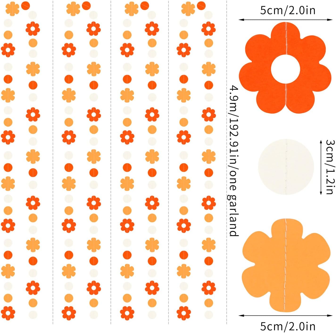 - 【Material】The material is eco-friendly colorful paper,Orange beige.You can cut to any length you want if you need shorter length.The dots and flower are cut very neatly.