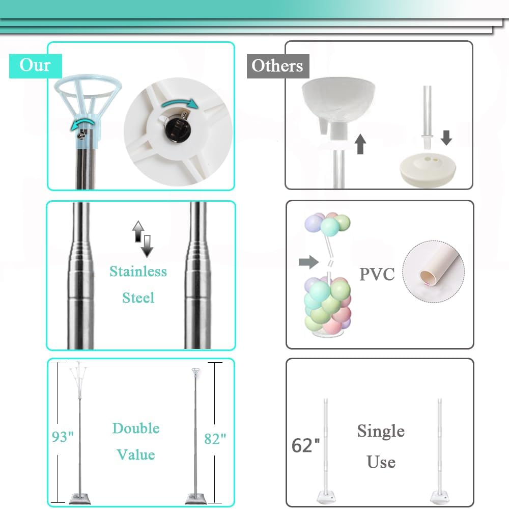 - Adjustable Height: The Decojoy 2IN1 Balloon Arch Kit includes two height-adjustable 7 ft balloon column kits or two 9 ft 7 stick balloon tree stand kits, allowing you to customize the height for your party.