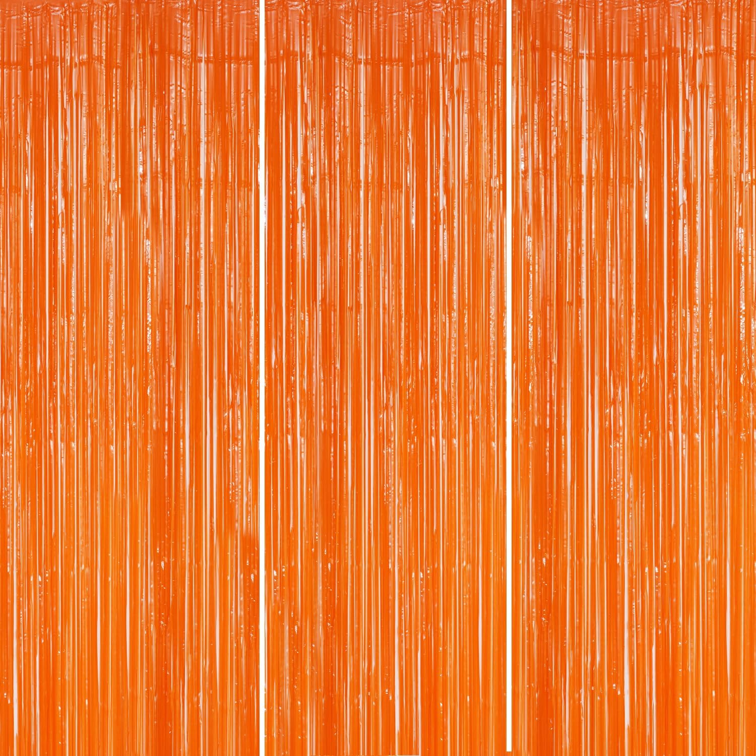 3 Pack Foil Fringe Backdrop - Orange Shiny Tinsel Curtains for Party Decoration/Photo Booth Props - 3.3x8.2 FT Metallic Foil Backdrop for Birthday, Wedding, Graduation, Christmas.