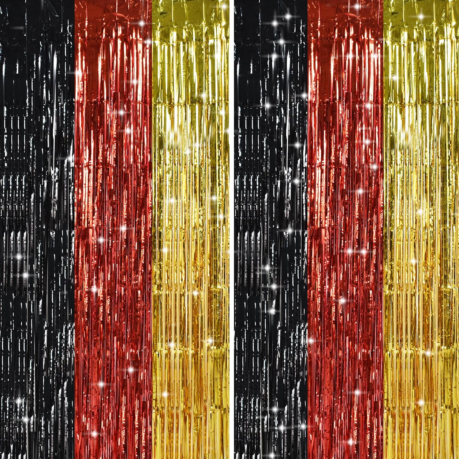 TONIFUL Black Red Gold Door Streamers,Black Red and Gold Photo Booth Backdrop Metallic Streamers Foil Fringe Curtain for Mouse Themed Birthday,New Year,Graduation,Baby Shower Party Decoration