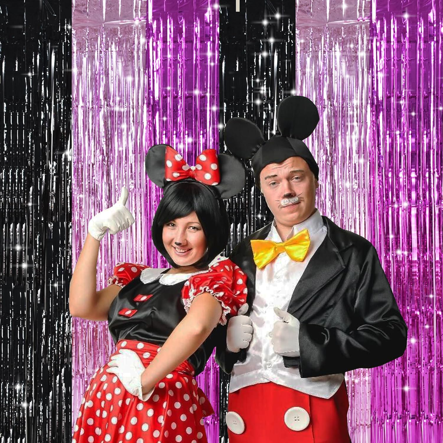 - PACKAGE CONTENTS: 2 x foil curtains: Big size (wide x drop):3.3 x 6.6 feet,6.6ft x 6.6ft in total. Brightly colored quality party decoration photography curtains will surely make your party more fun.