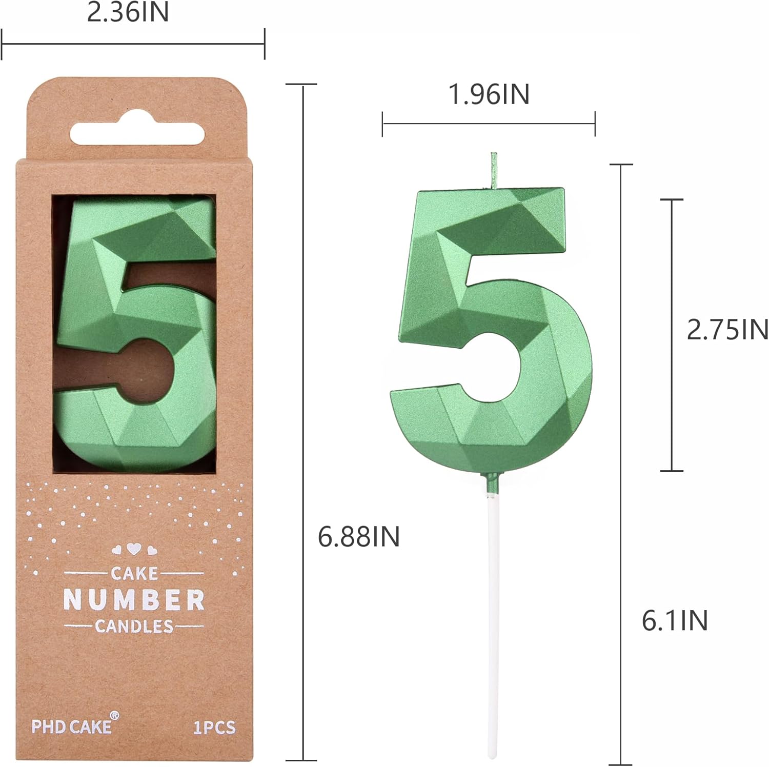 - New: 2.76 Inch Large Crystal Green 5 Number Birthday Candle designed to make your cake and birthday a unique and truly inspiring event.