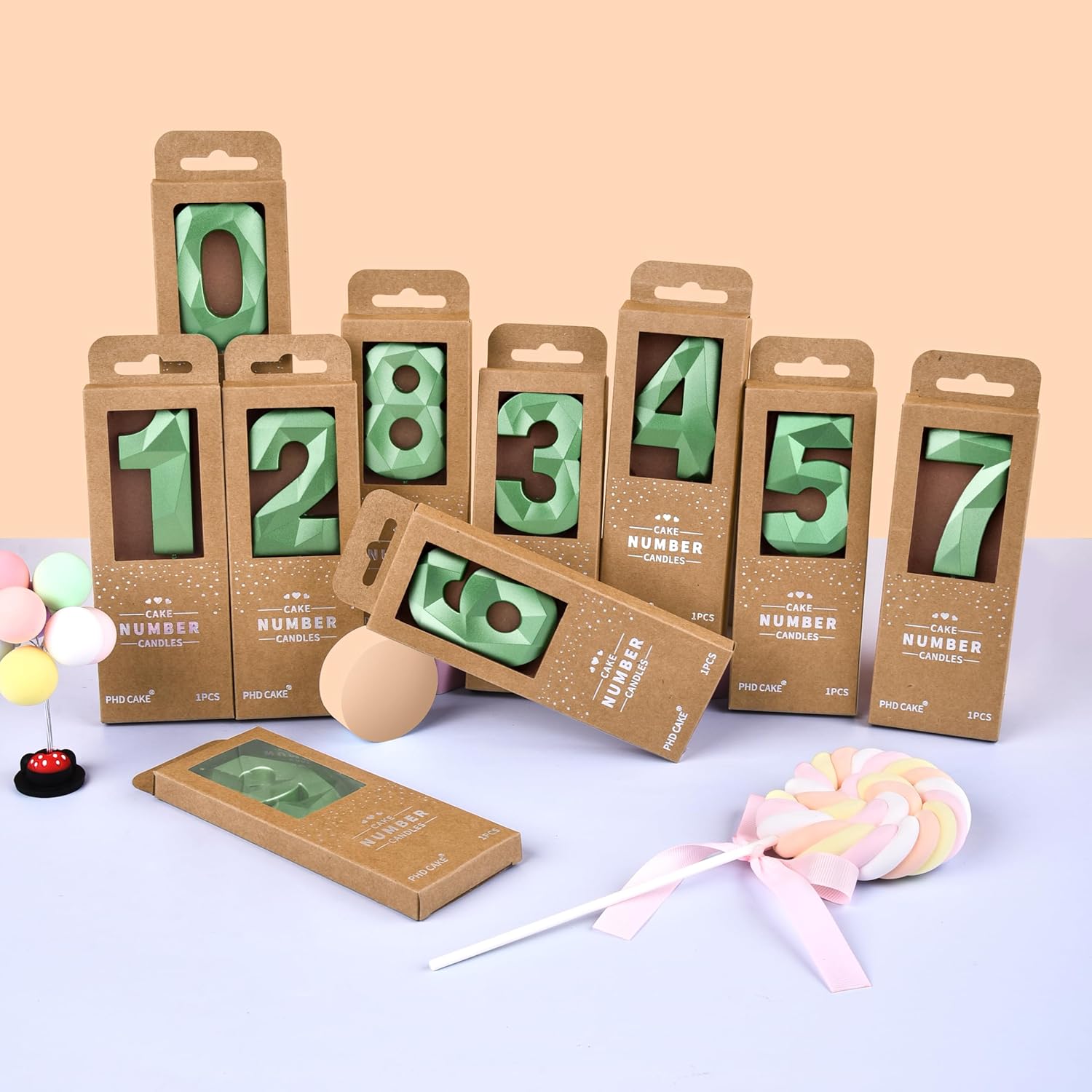 PHD CAKE 2.76 Inch Crystal Green 1 Number Cake Candle, Numeral Birthday Candles, Green Number Candles, Party Celebration