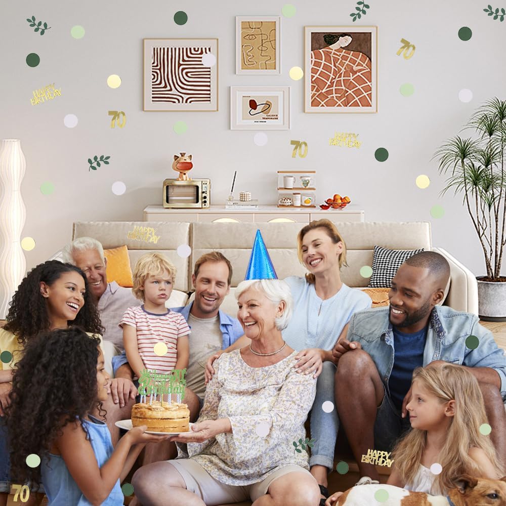 Sage Green 70th Happy Birthday Confetti, 70th Birthday Table Decorations Scatter Green Gold Foil Cake Confetti Decorations for 70 Bday Women Men Party Decor 230 Pcs