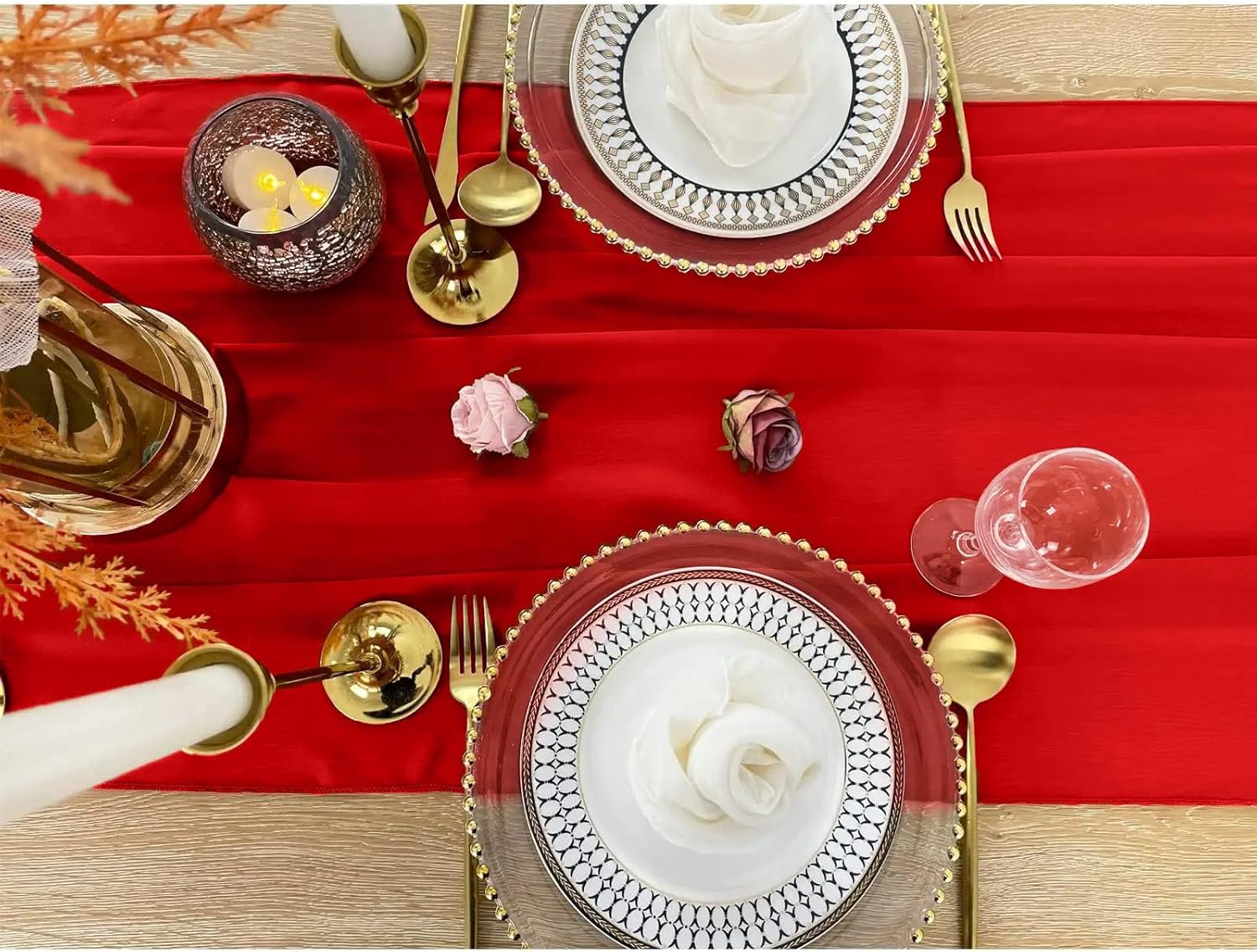 EHLDekol Chiffon Table Runners Romantic Sheer Wedding Table Runner Top Table Bridal Party Decoration (Red, 10ft, 10Pack)