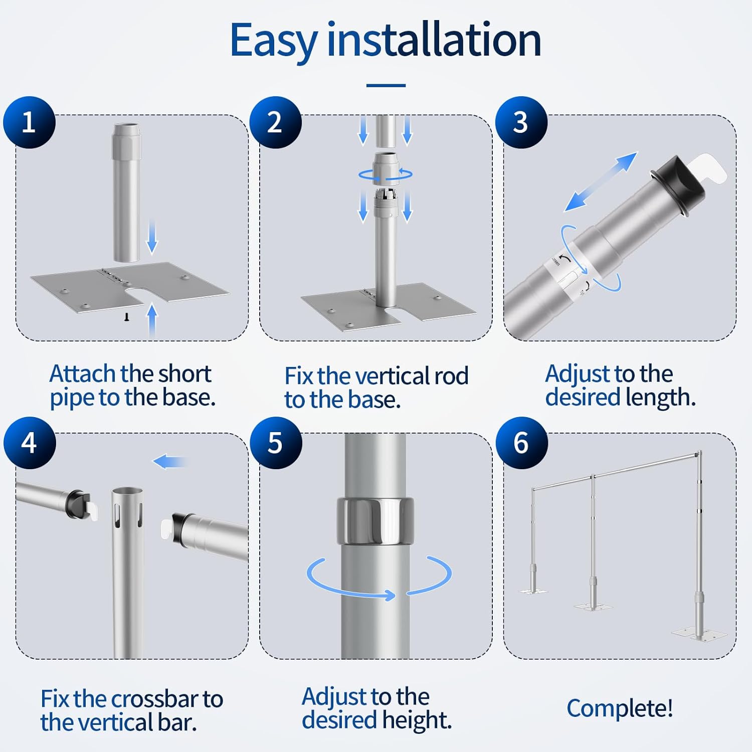 - 【Sturdy & Stable】 Thickened pipe and widened base provide greater load-bearing capacity and stability. The pipe and drape stand kit is made of high quality aluminum alloy featuring rust resistant, high strength and good gloss, which makes sure it's durable and sturdy enough.