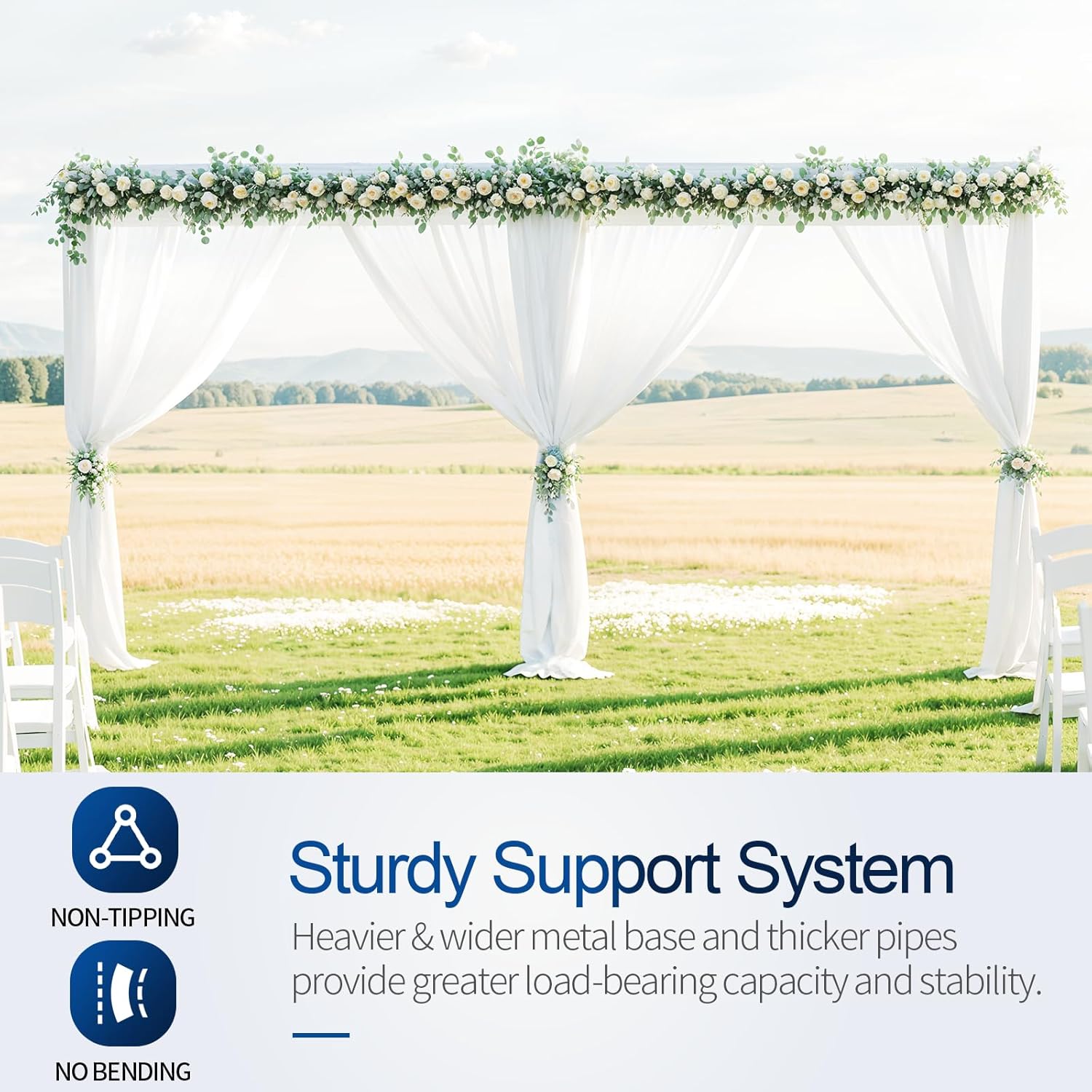 - 【Multiple Application】 Perfect for wedding, parties, birthday, photography, photo shooting, baby shower, exhibition, trade show, video studio, bid events and more indoor or outdoor occasions. You can hang curtains, backdrops, balloons, flower walls, vine walls, string lights and other decorations.