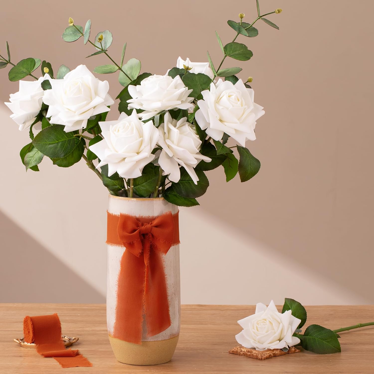 - 【Size and Color】Each roll of chiffon ribbon is 2 inches wide and 7 yards long, perfect for various creative uses such as making bows, decorating wreaths, and DIY crafts. This set includes burnt orange, nude pink, and cream white ribbons, one roll each. These vibrant frayed ribbons add a rustic charm to your creations, ideal for bouquet wrap or gift ribbon.