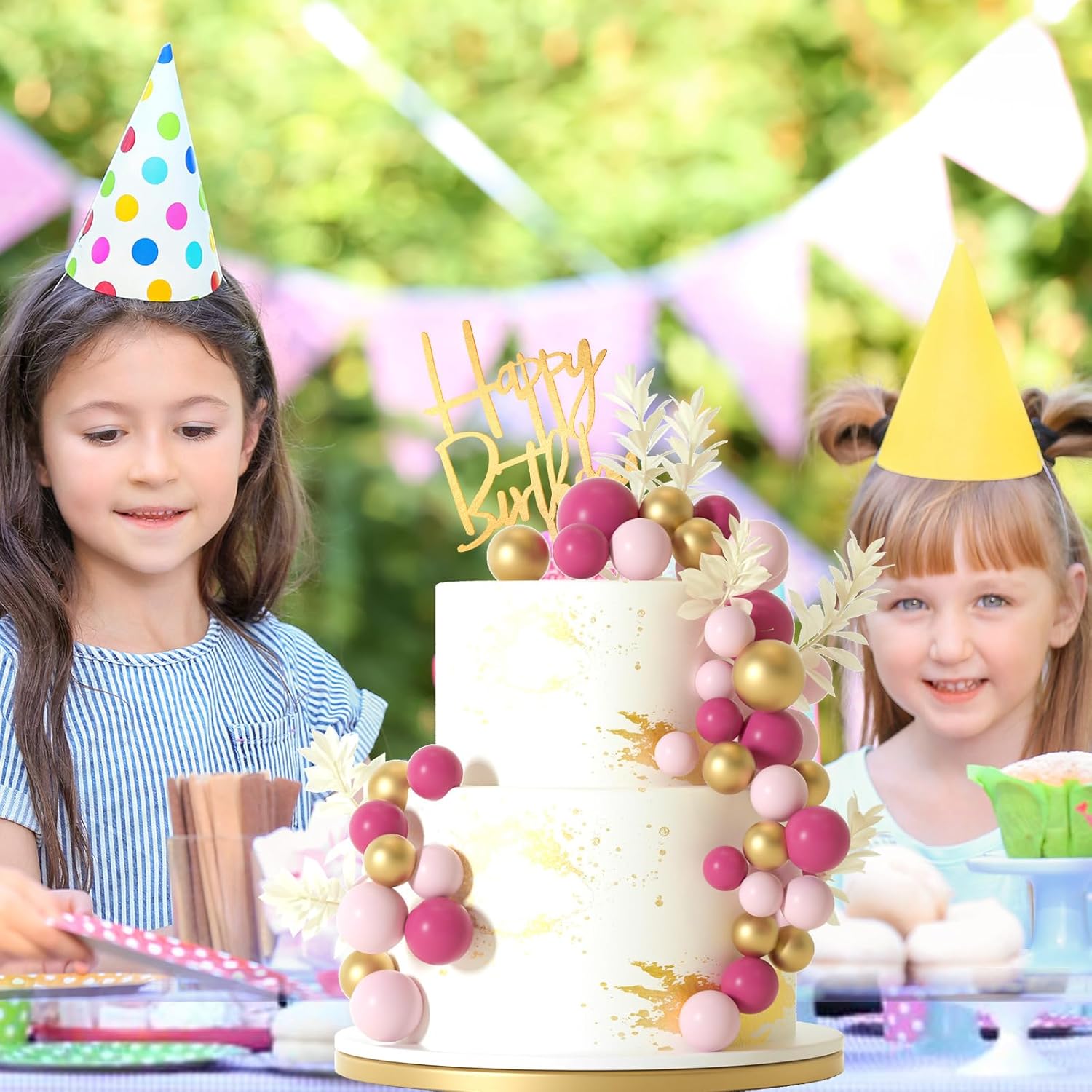 - Package included : 10pcs white grass cake toppers, 1pc happy birthday cake topper, 14pcs pink balls, 14pcs gold balls, 14pcs light pink balls.