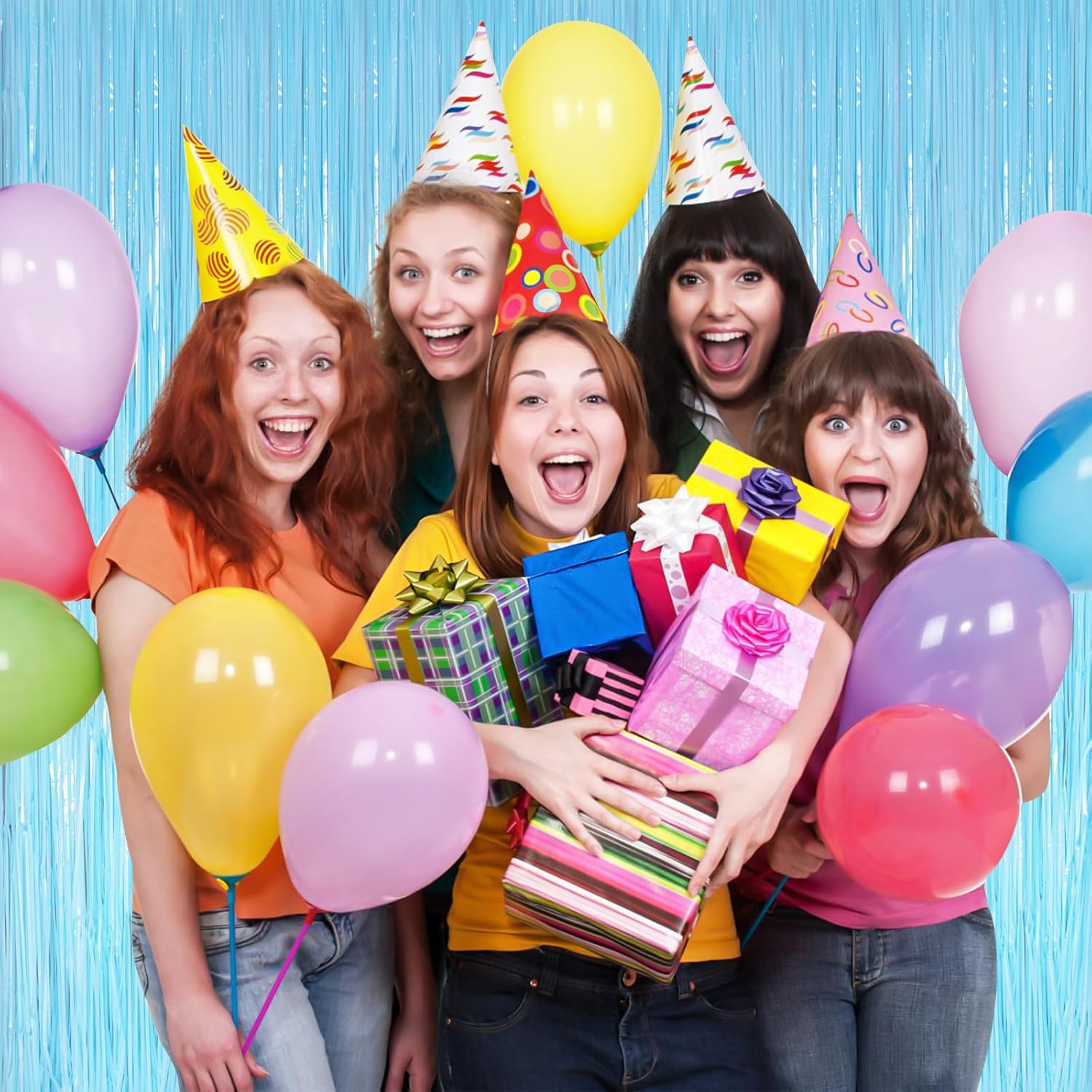 Macaron Blue Fringe Curtain Party Streamers 2Pack 3.3 x 8.3 Ft Foil Fringe Backdrop Curtains for Birthday Wedding Bridal Baby Shower Holiday Tinsel Streamers Blue Party Decorations Door Streamer