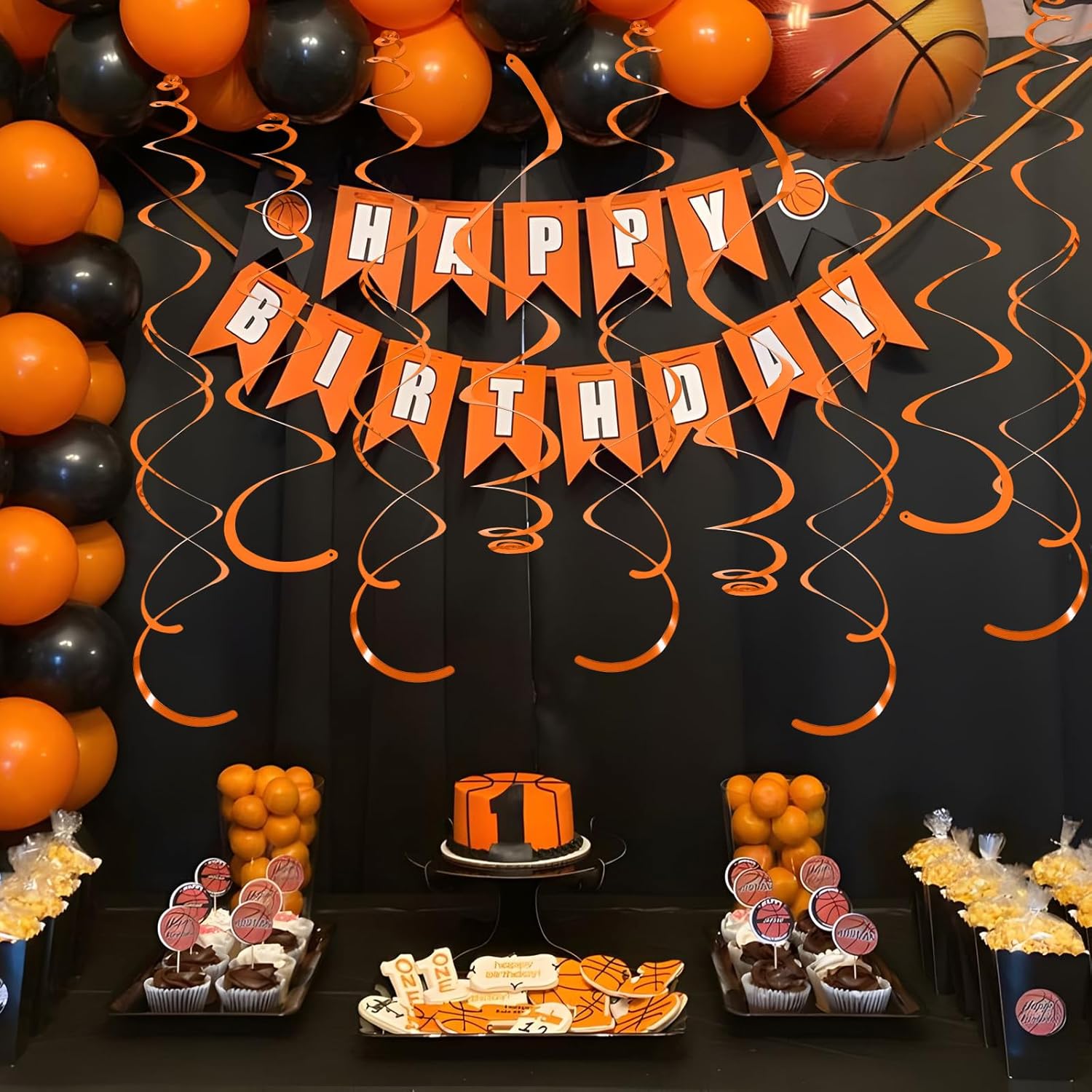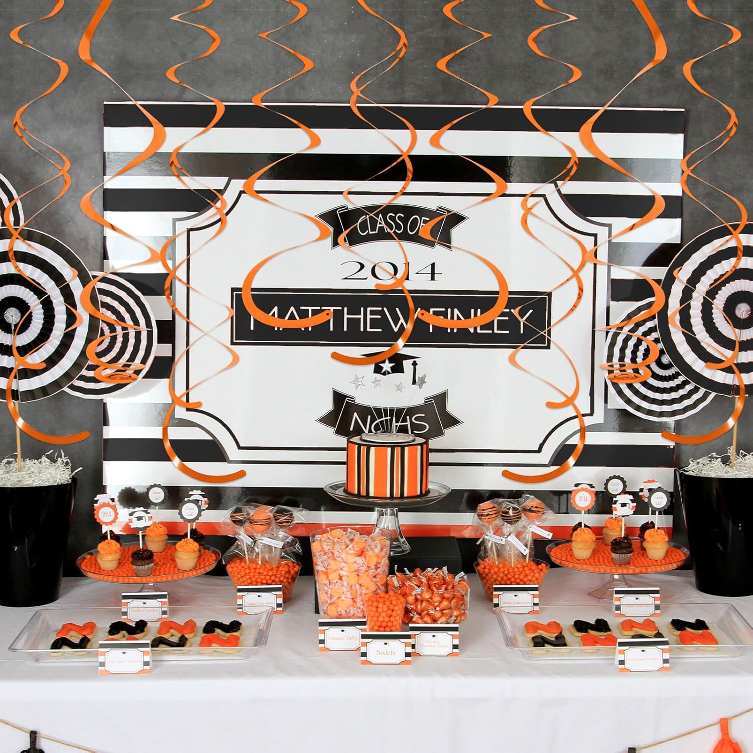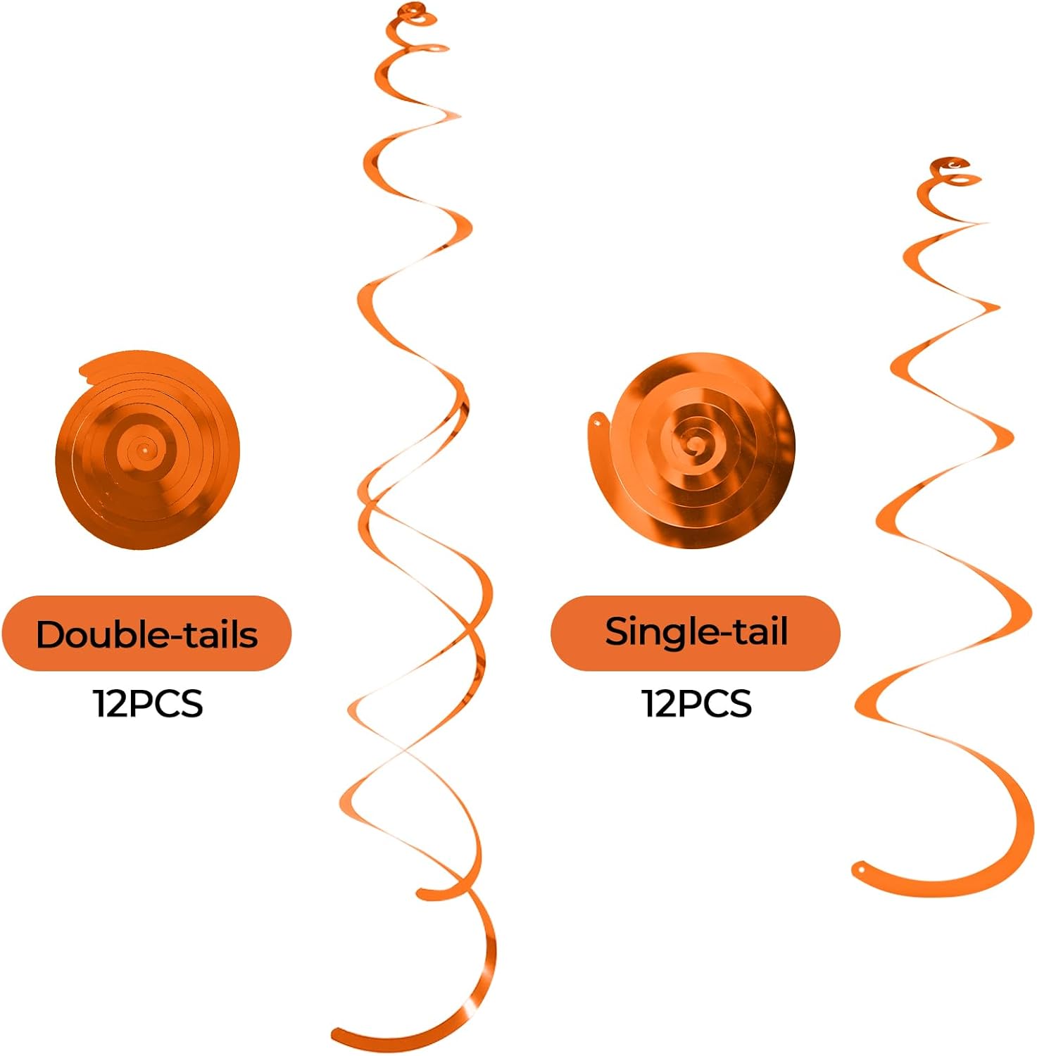 24 PCS Orange Hanging Swirl, Sparkle Ceiling Decorations, Plastic Streamer Party Decorations with Double-Swirls and Single-Swirls for Birthday Decorations, Graduation, Halloween, Baby Shower