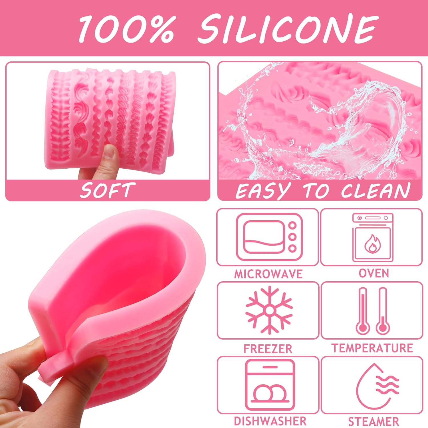 Lambeth Cake Border Fondant Molds, Whipped Cream Shaped Silicone Molds, Cake Decoration Chocolate Baking Molds for Cupcake Topper Mousse Cookie Candy Gum Paste Clay Resin DIY Crafts