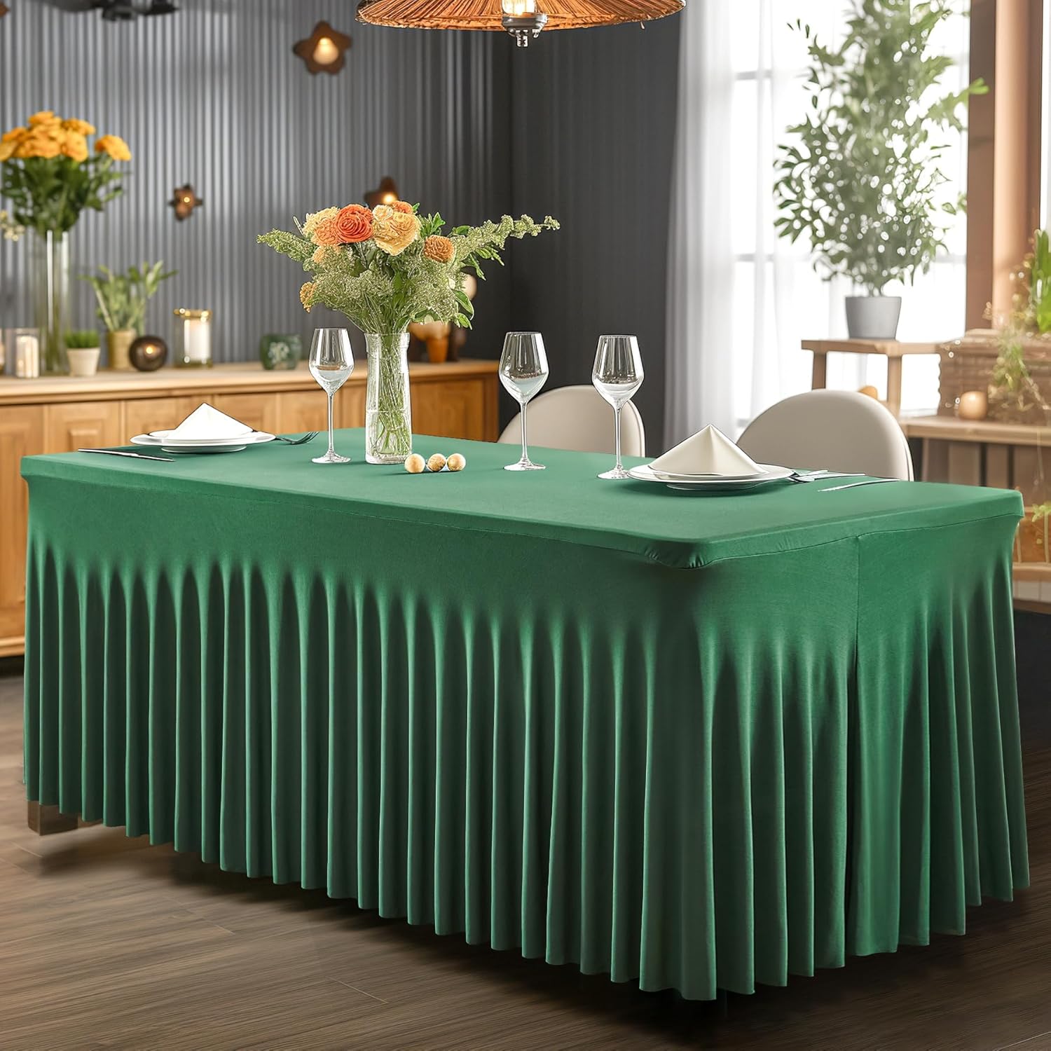 Wish Care 6 Pack Hunter Green Spandex Table Clothes for 6 Foot Rectangle Tables, 6FT Wrinkle Free Fitted Tablecloths Ruffles Design Table Cover for Party, Banquet, Wedding and Events