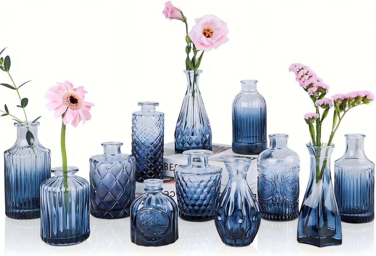 - Exquisite Décor: These navy blue glass vases not only capture and reflect light beautifully but also feature a textured exterior design that exudes a vintage chic bohemian aesthetic. Perfect for creating breathtaking centerpieces, these gorgeous little vases will undoubtedly elevate the ambiance of any space.