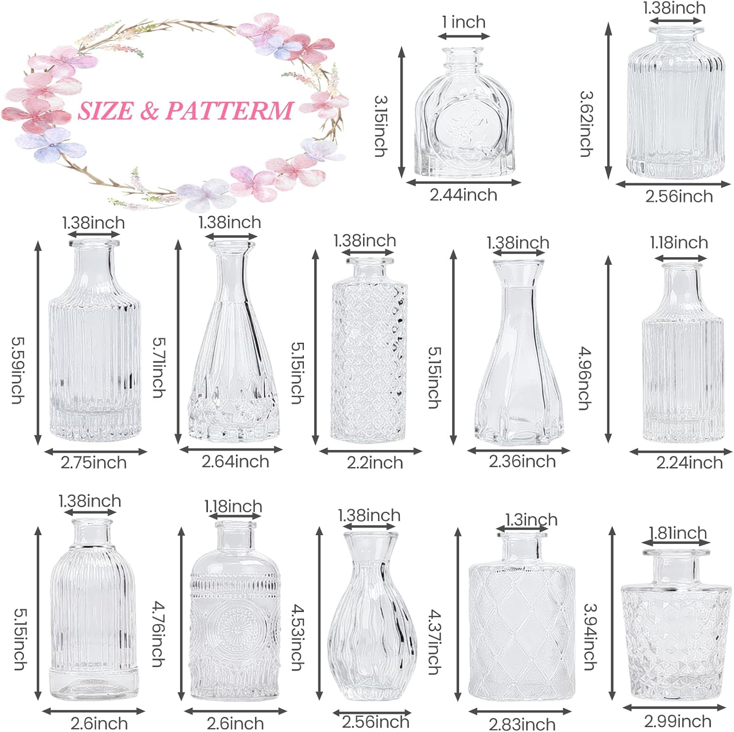 - Vintage Design: UPBUD bud pattern vases evoke a nostalgic charm, adding a vintage touch to your living space and enhancing the aesthetic appeal of your home. This collection features 12 glass vases of varying sizes and shapes, effortlessly elevating your table setup to create a truly distinctive ambiance.