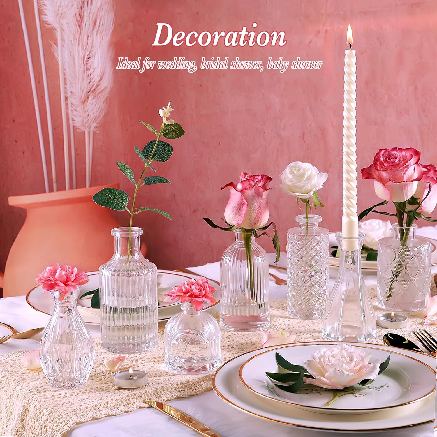 Clear Glass Bud Vases Set of 12, Mini Flower Vase for Centerpieces, Small Vases in Bulk for Wedding Decorations, Vintage Vase for Baby Shower, Party, Recepetion, Home Table Décor