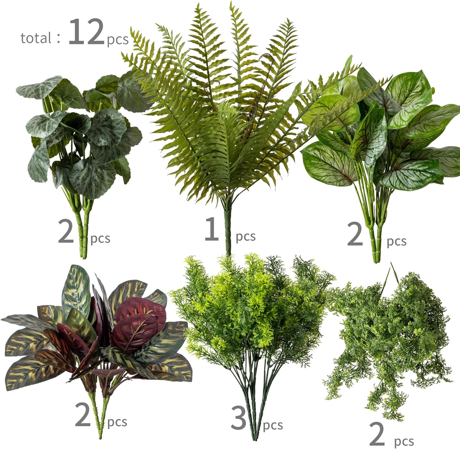 - 【Cost-effective Combination】:Each package contains 6 different kinds of artificial greeneries, which totally has 12 pcs. You can combine or divide them any way you like to create a vibrant corner and add a fresh looking to you house.