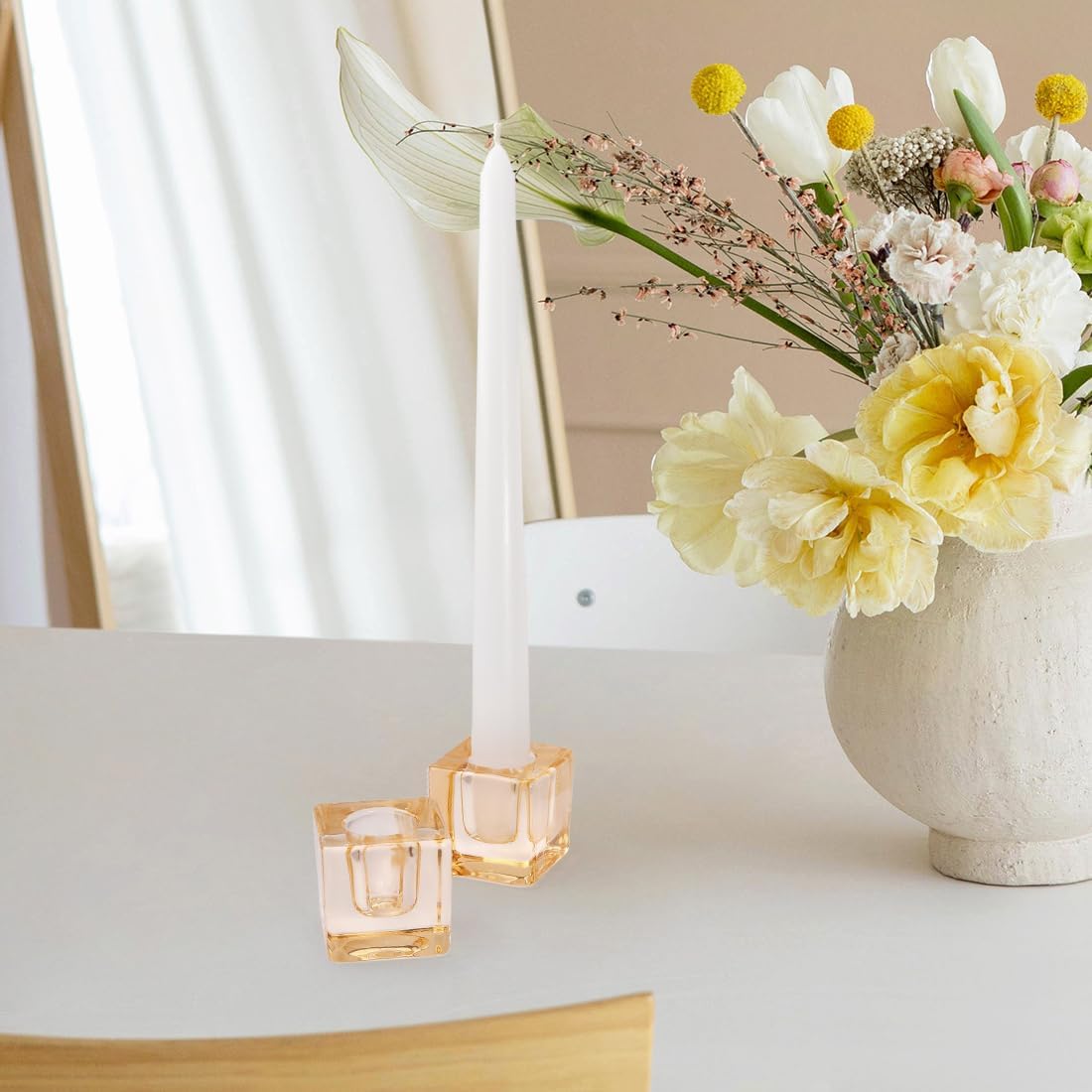 - Taper candle holders:One package includes 24 glass candle holders, these exquisite candlestick holders are designed to add an elegant and romantic touch to your room.