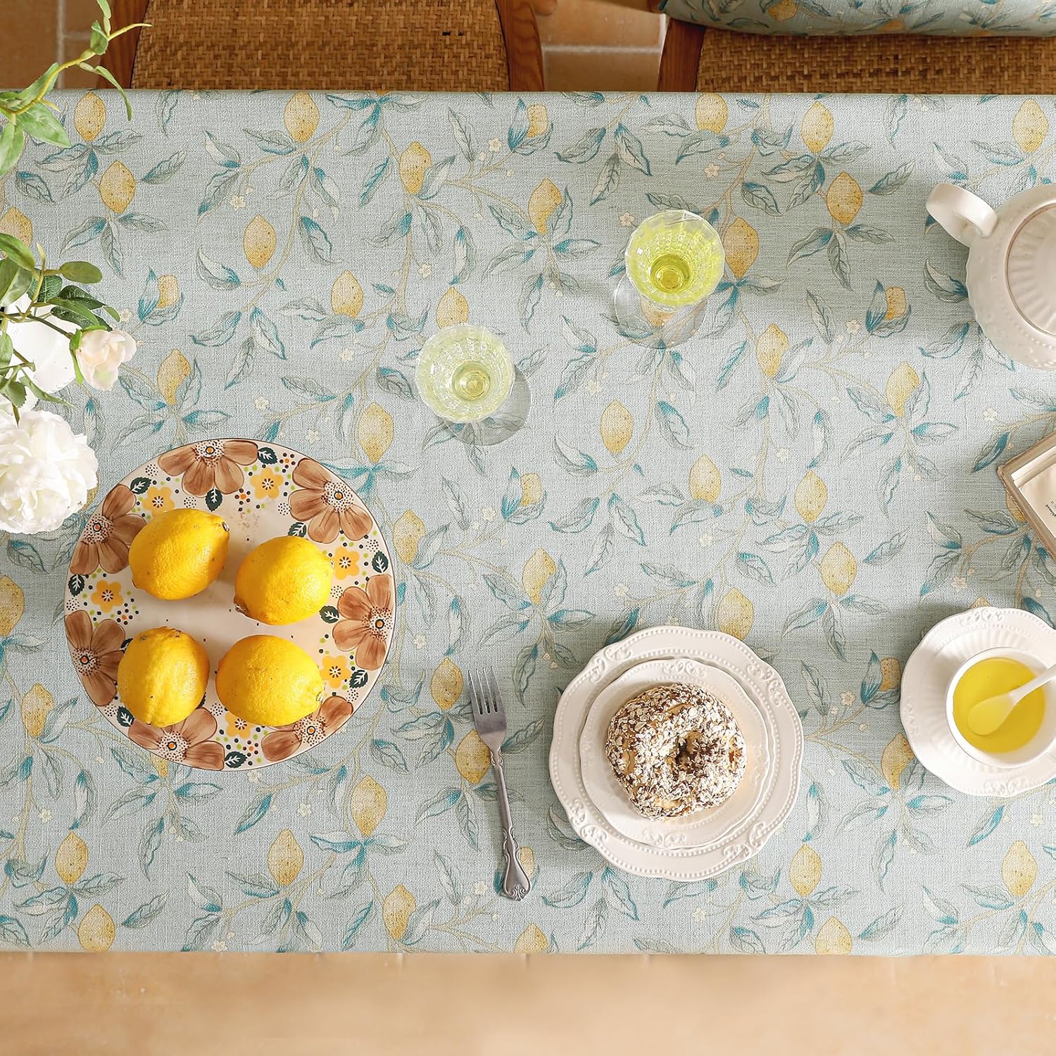 patdrea Designer Linen Green Tablecloth for Rectangle Table,Vintage Breathable Yellow Fruits Pattern Table Cloth,Decoration Cover for Kitchen Dining,Christmas,Thanksgiving,Party,63"x87"-Ania a