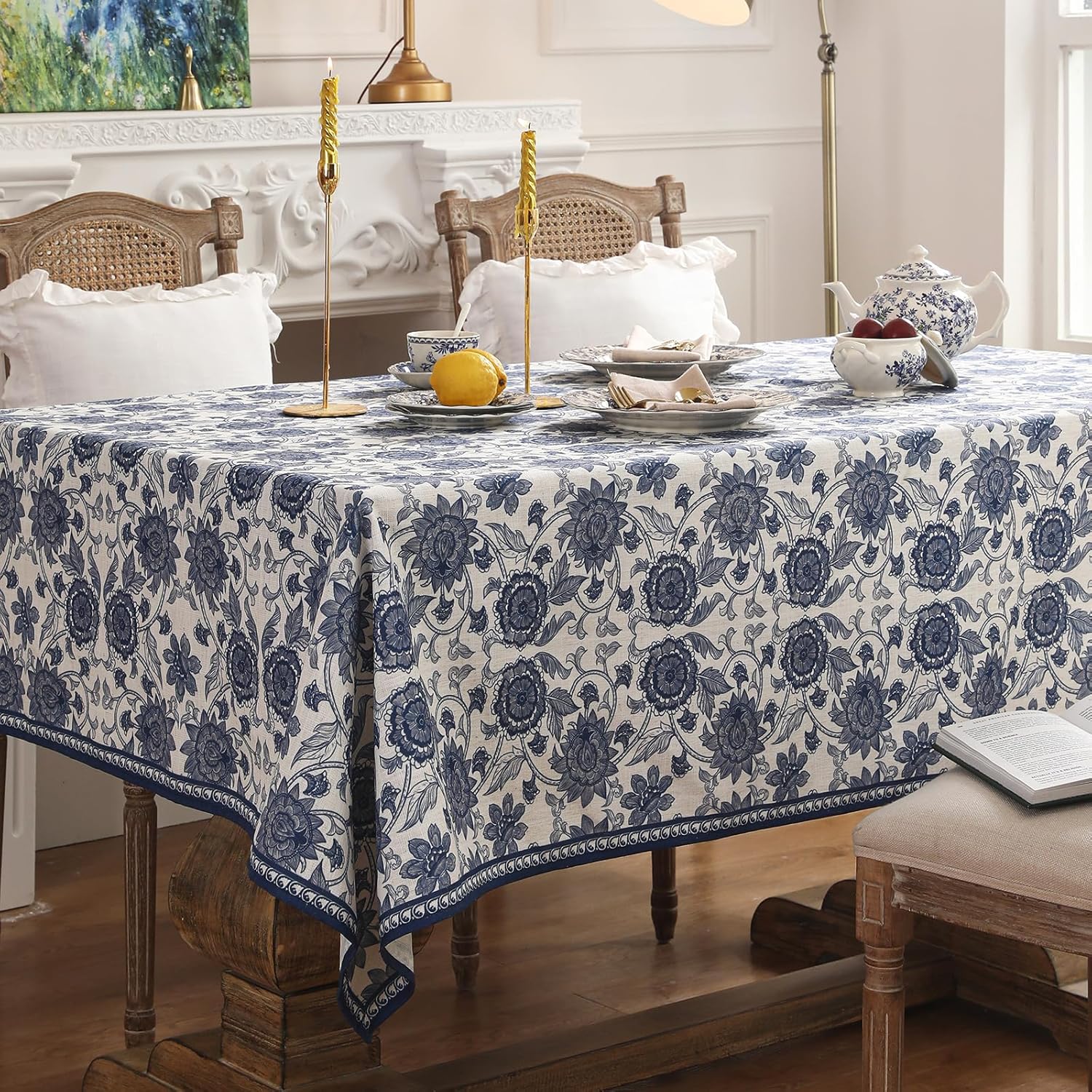 patdrea Designer Vintage Blue Rectangle Tablecloth,Linen Anti-Wrinkle Paisley Pattern Farmhouse Table Cloth,Decor Table Cover Cloth for Kitchen Dining,Christmas,Thanksgiving,63"x87"-Lantang a