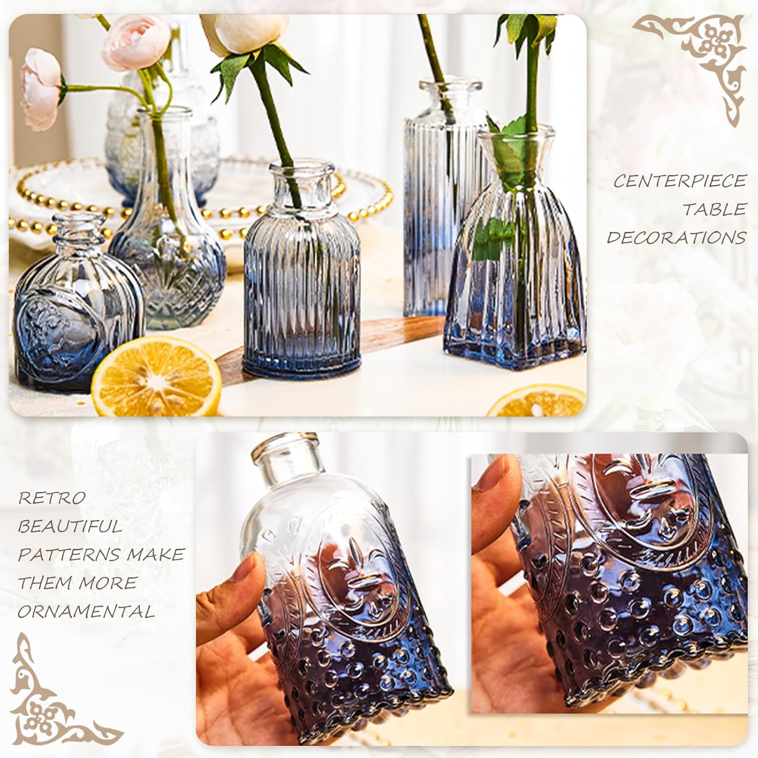 - Thick and Sturdy: Our glass vases bulk is made of thick and sturdy glass, strong and not easily broken. Each small glass vases floreros has a thickened base for stability, and the textured pattern on the surface of small vases for flowers adds a unique touch, injecting an element of sophistication to create a fun and captivating visual effect.