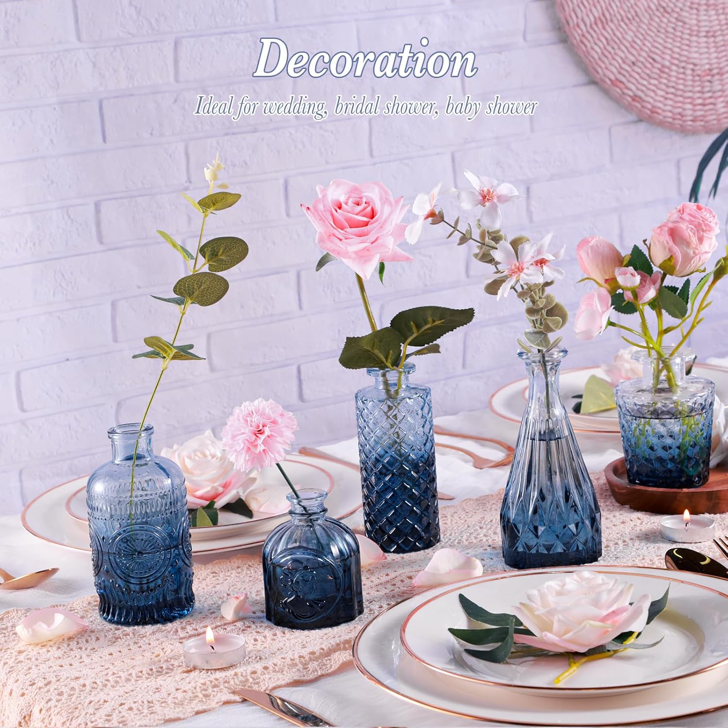 Navy Blue Glass Bud Vases Set of 5, Mini Flower Vase for Centerpieces, Small Clear Vases in Bulk for Wedding Decorations, Vintage Vase for Table, Graduation, Home Décor