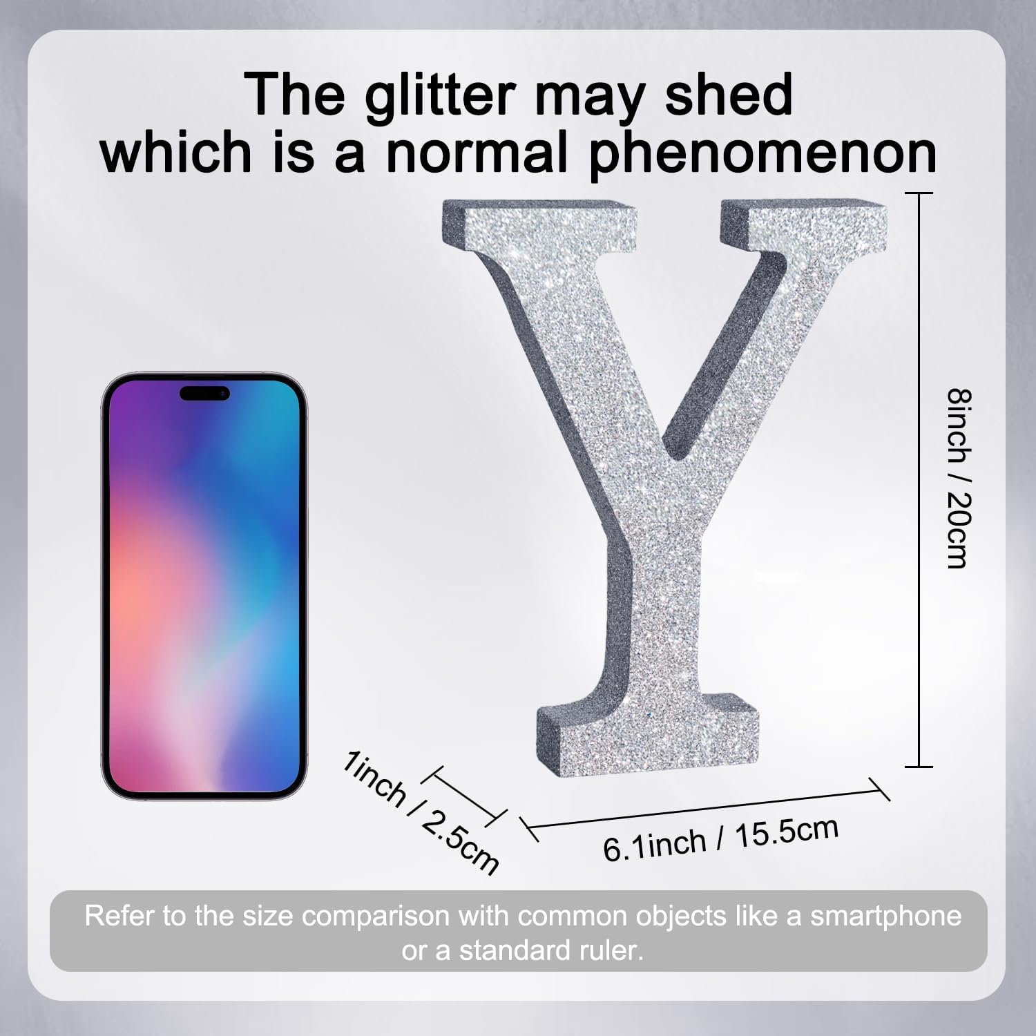 - ITEM INFORMATION AND SIZE: 1 Pcs * Y Silver Glitter Letter Ornament. Size: 8 * 5.8 * 1 Inches (20*15*2.5 CM). Before purchasing, Please check the size carefully to make sure it meets your needs