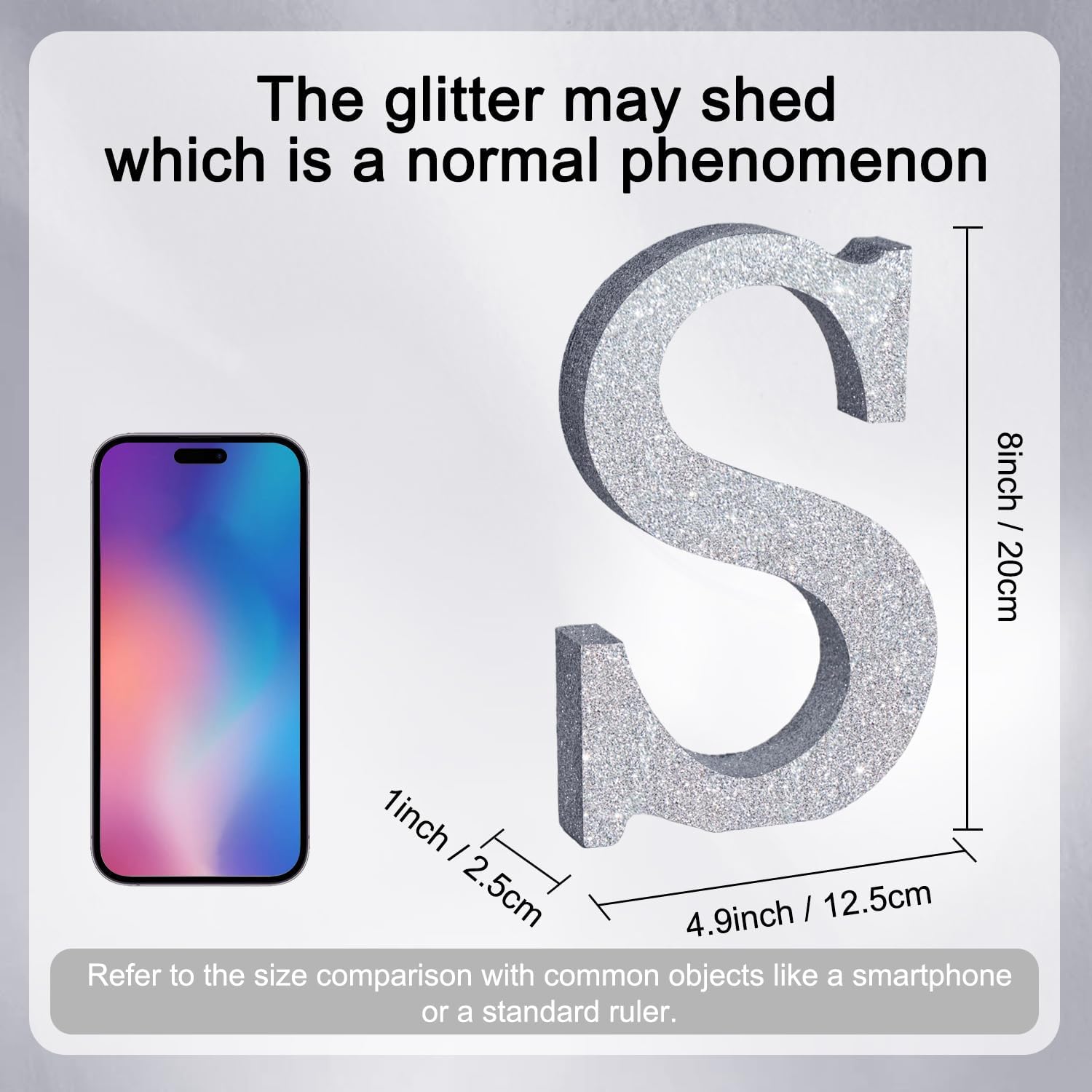 - ITEM INFORMATION AND SIZE: 1 Pcs * S Silver Glitter Letter Ornament. Size: 8 * 5.8 * 1 Inches (20*15*2.5 CM). Before purchasing, Please check the size carefully to make sure it meets your needs