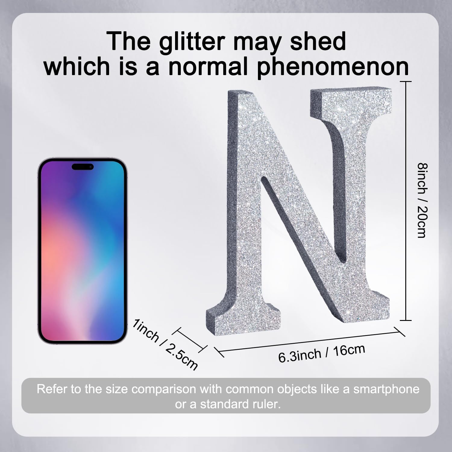 - ITEM INFORMATION AND SIZE: 1 Pcs * N Silver Glitter Letter Ornament. Size: 8 * 5.8 * 1 Inches (20*15*2.5 CM). Before purchasing, Please check the size carefully to make sure it meets your needs