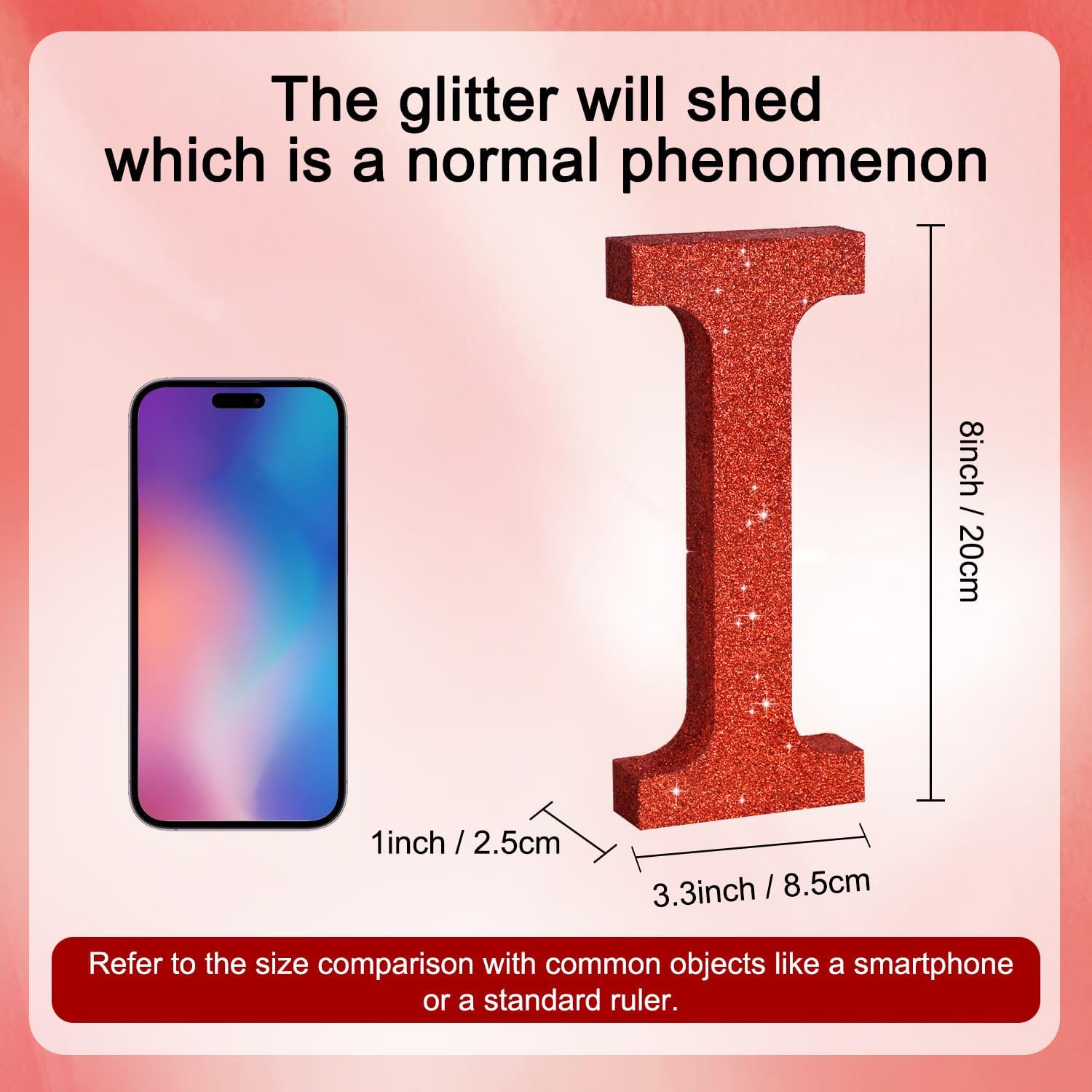 - ITEM INFORMATION AND SIZE: 1 Pcs * I Red Glitter Letter Ornament. Size: 8 * 5.8 * 1 Inches (20*15*2.5 CM). Before purchasing, Please check the size carefully to make sure it meets your needs